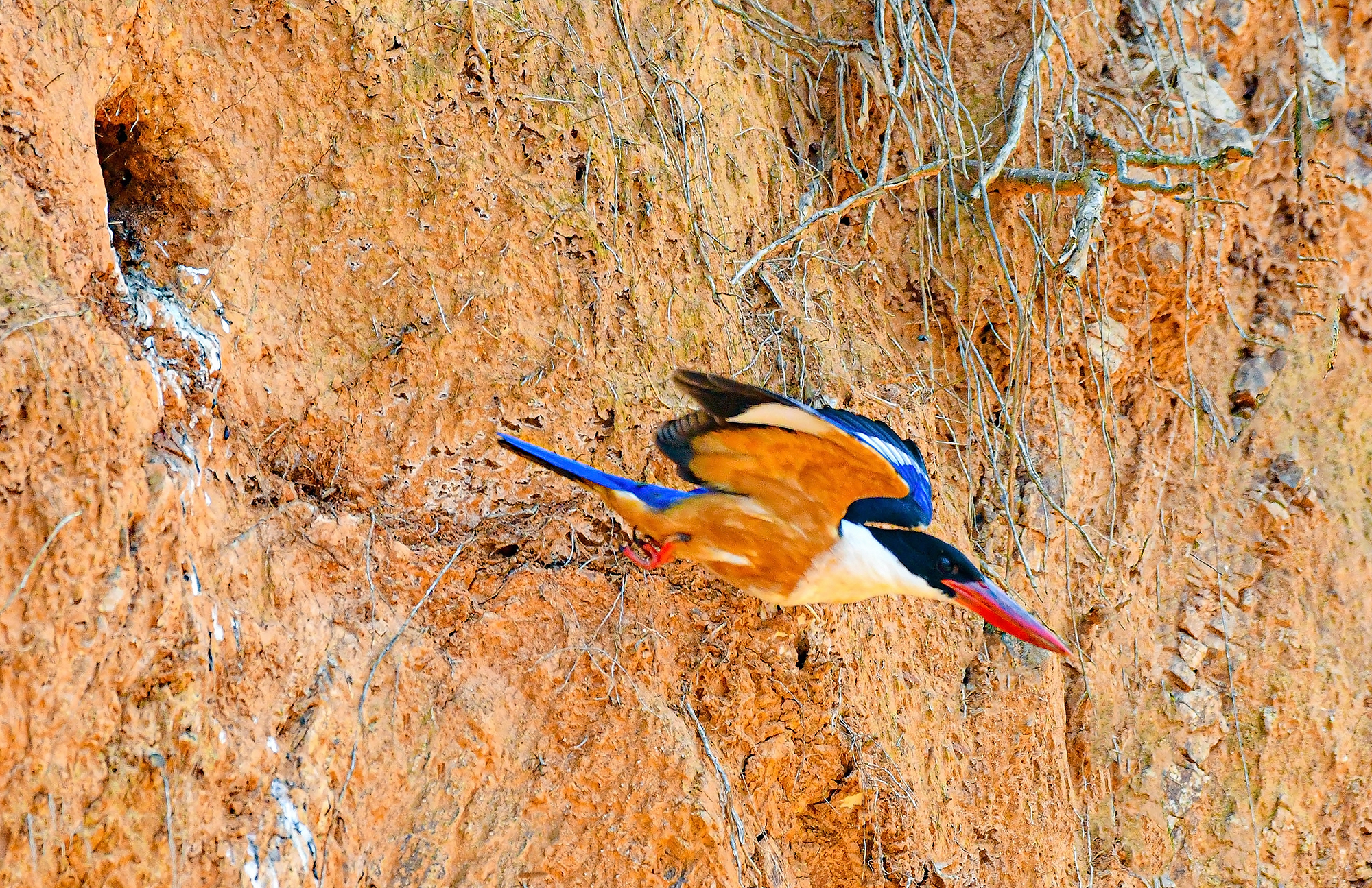 청호반새는 대부분 텃새화된 여름철새이다, 흙벼랑이 있는