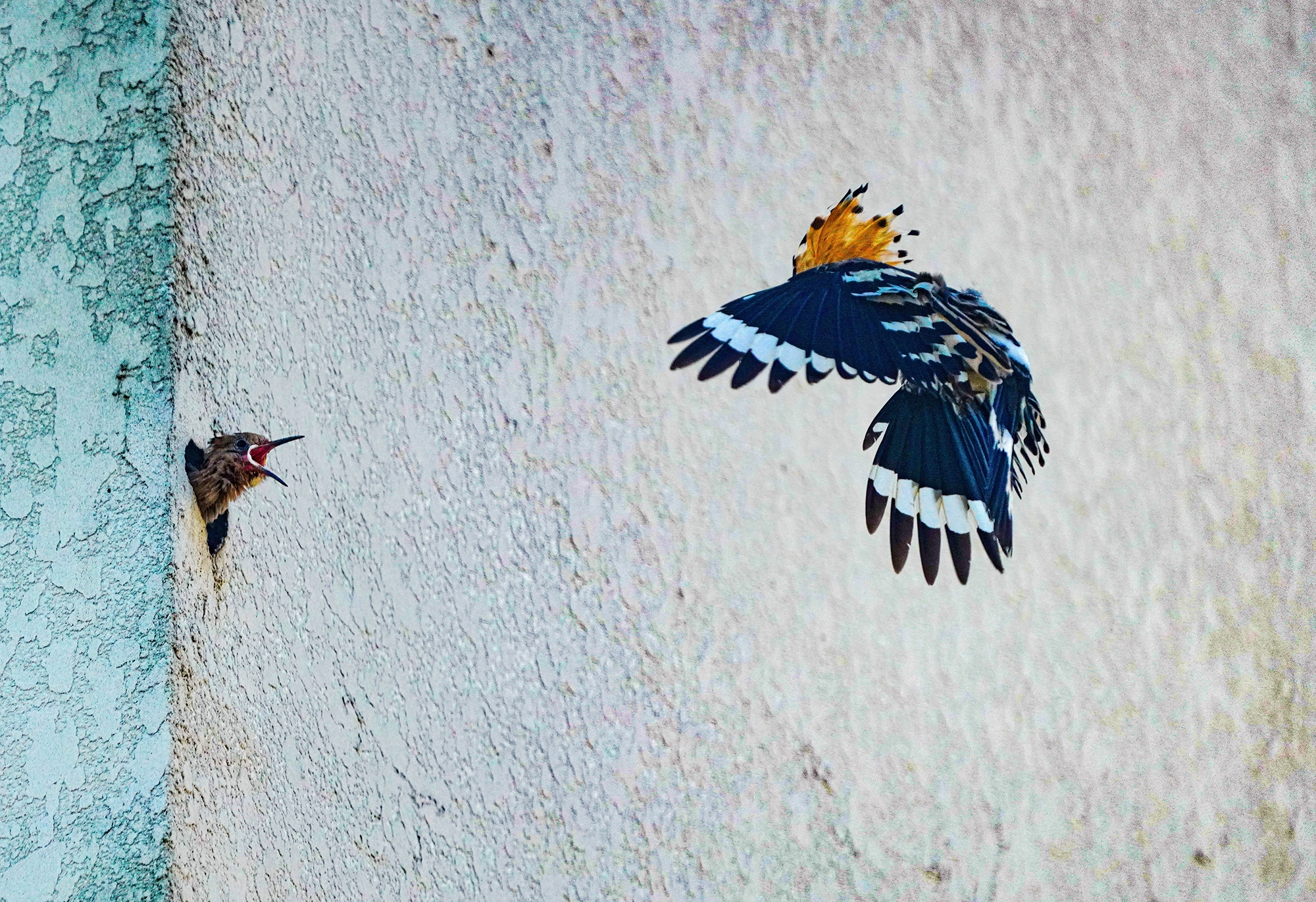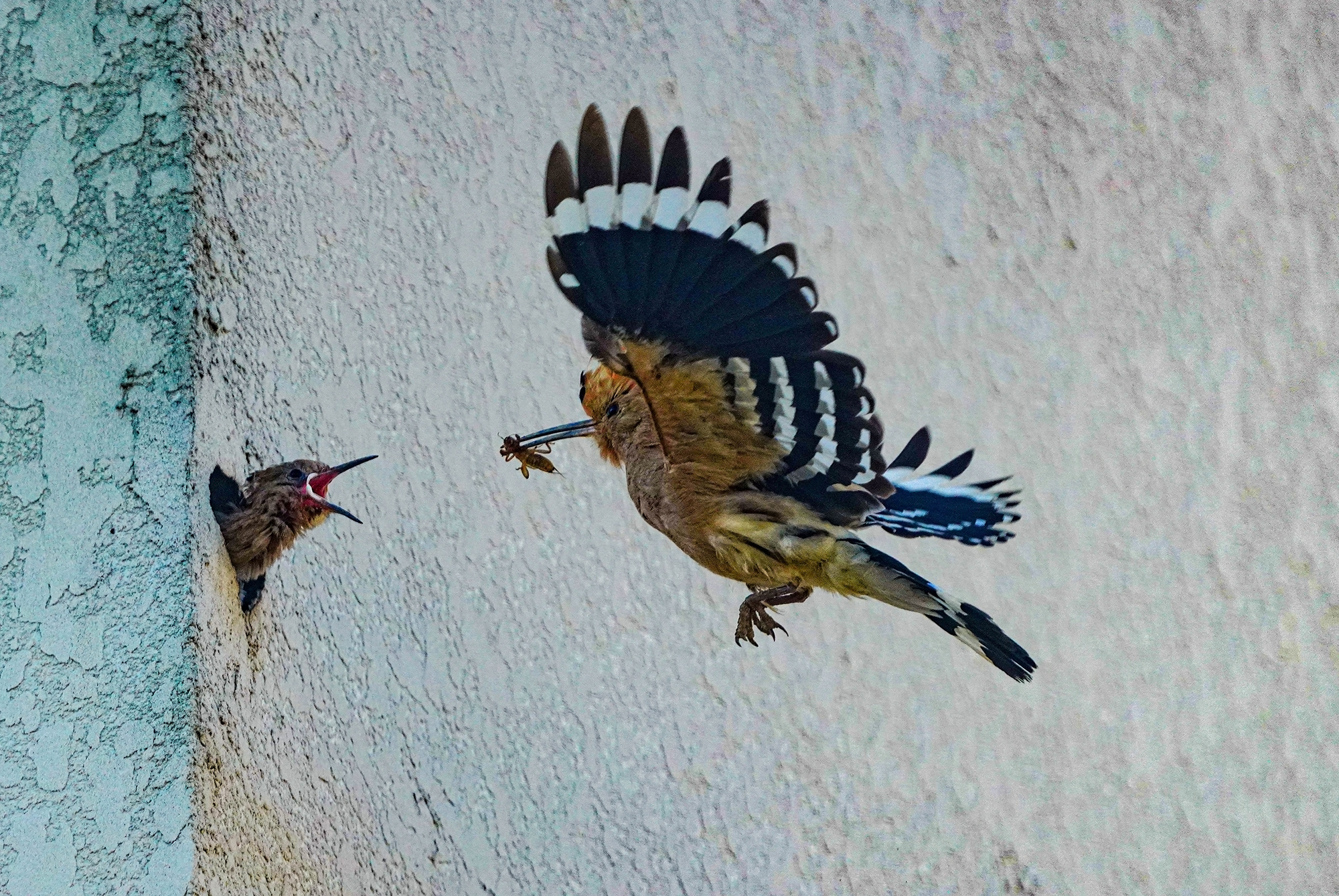 후투티 담벼락 육추