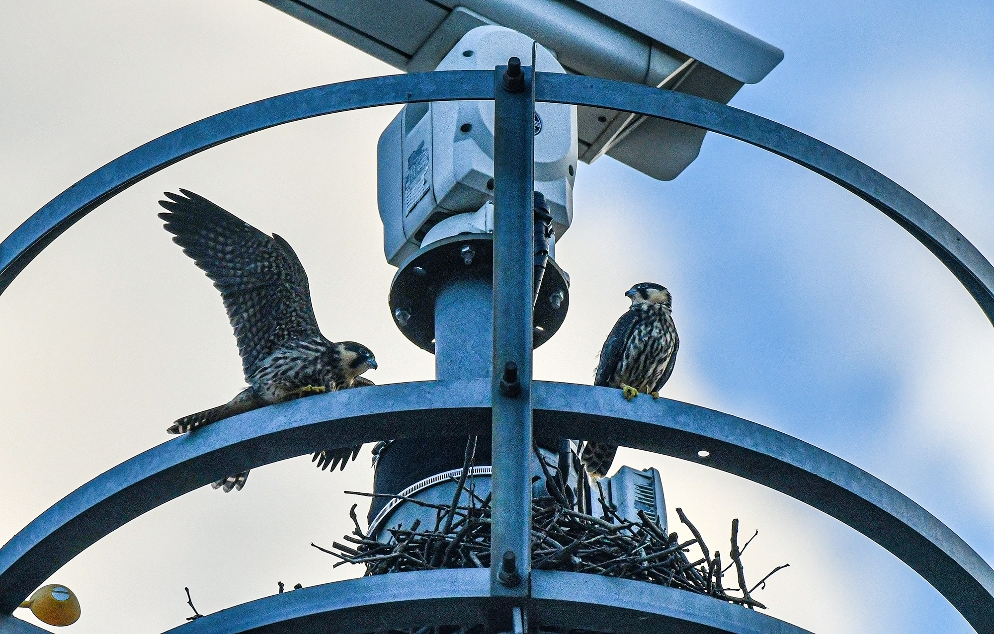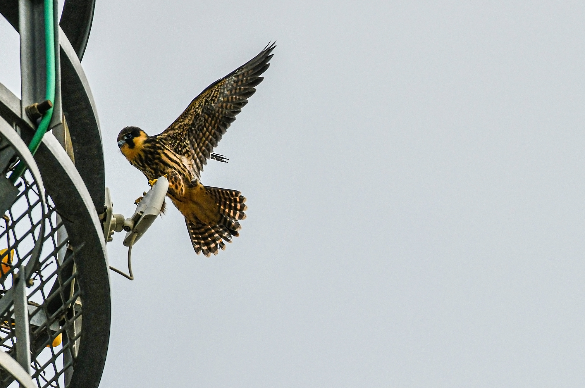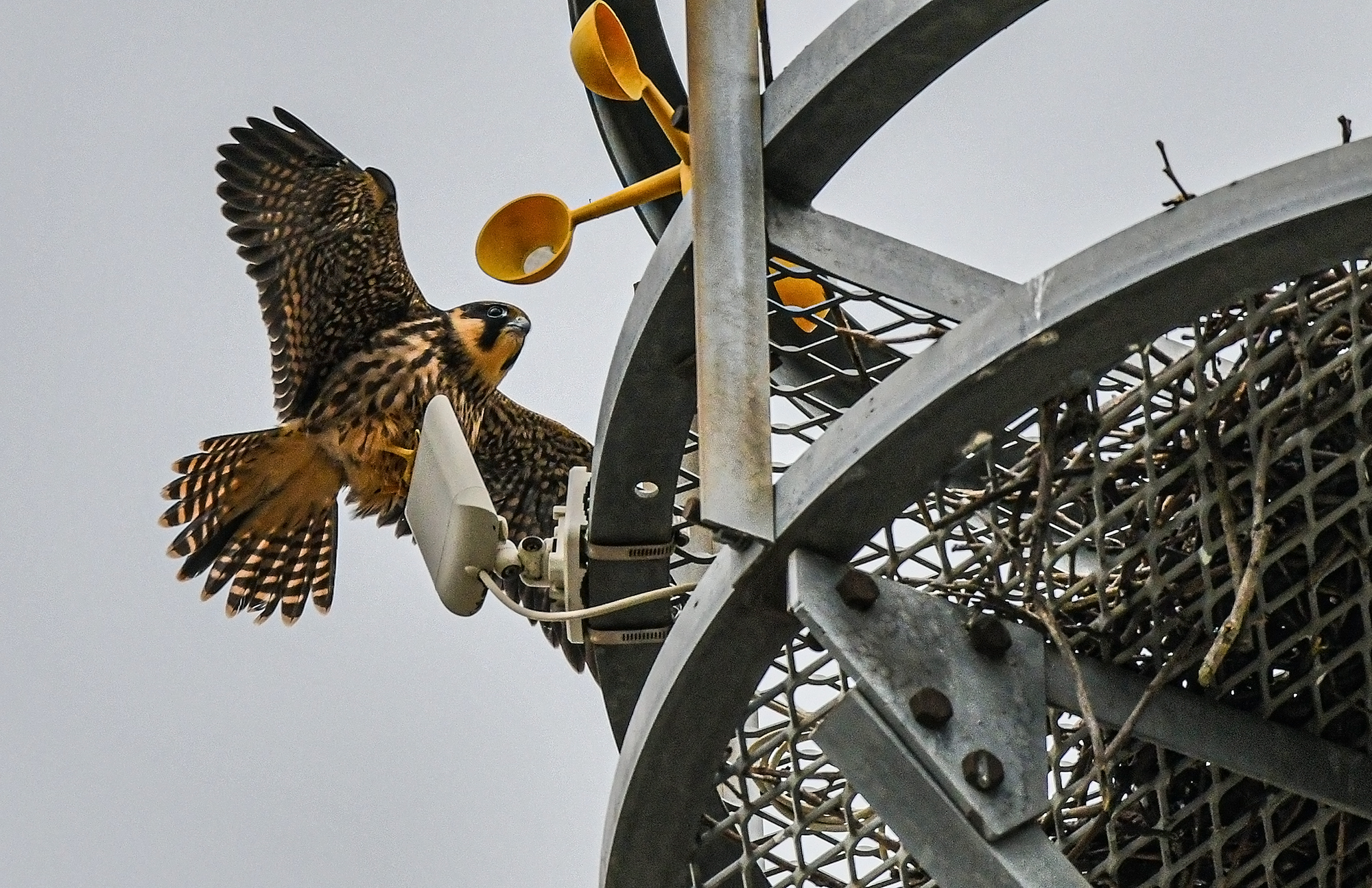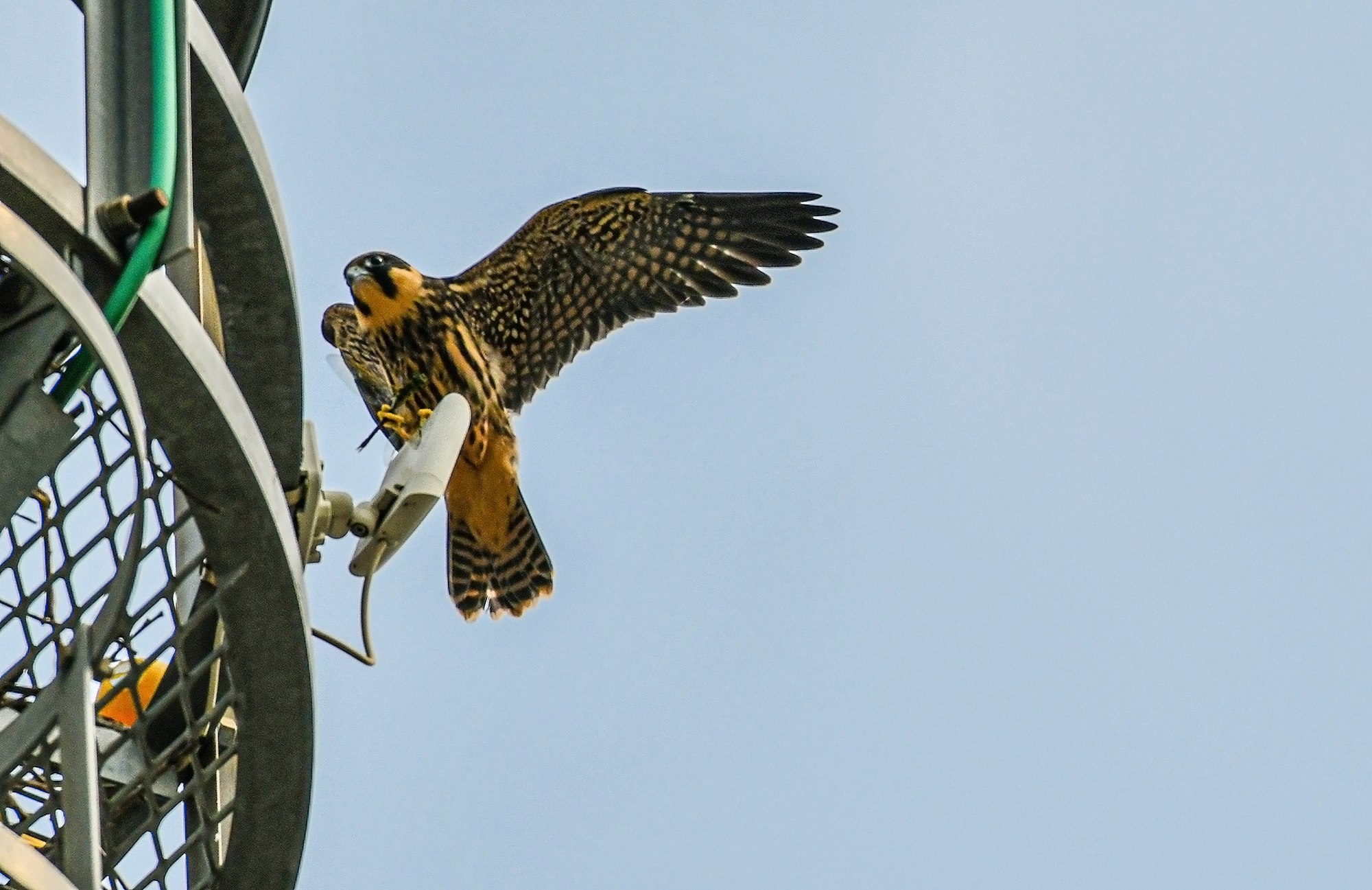 수도권의 한 통신주 높은 철탑위에 둥지를 튼 새홀리기는