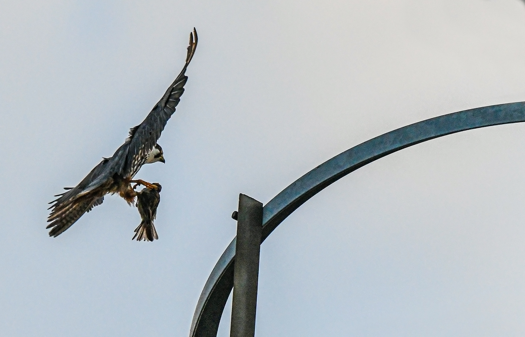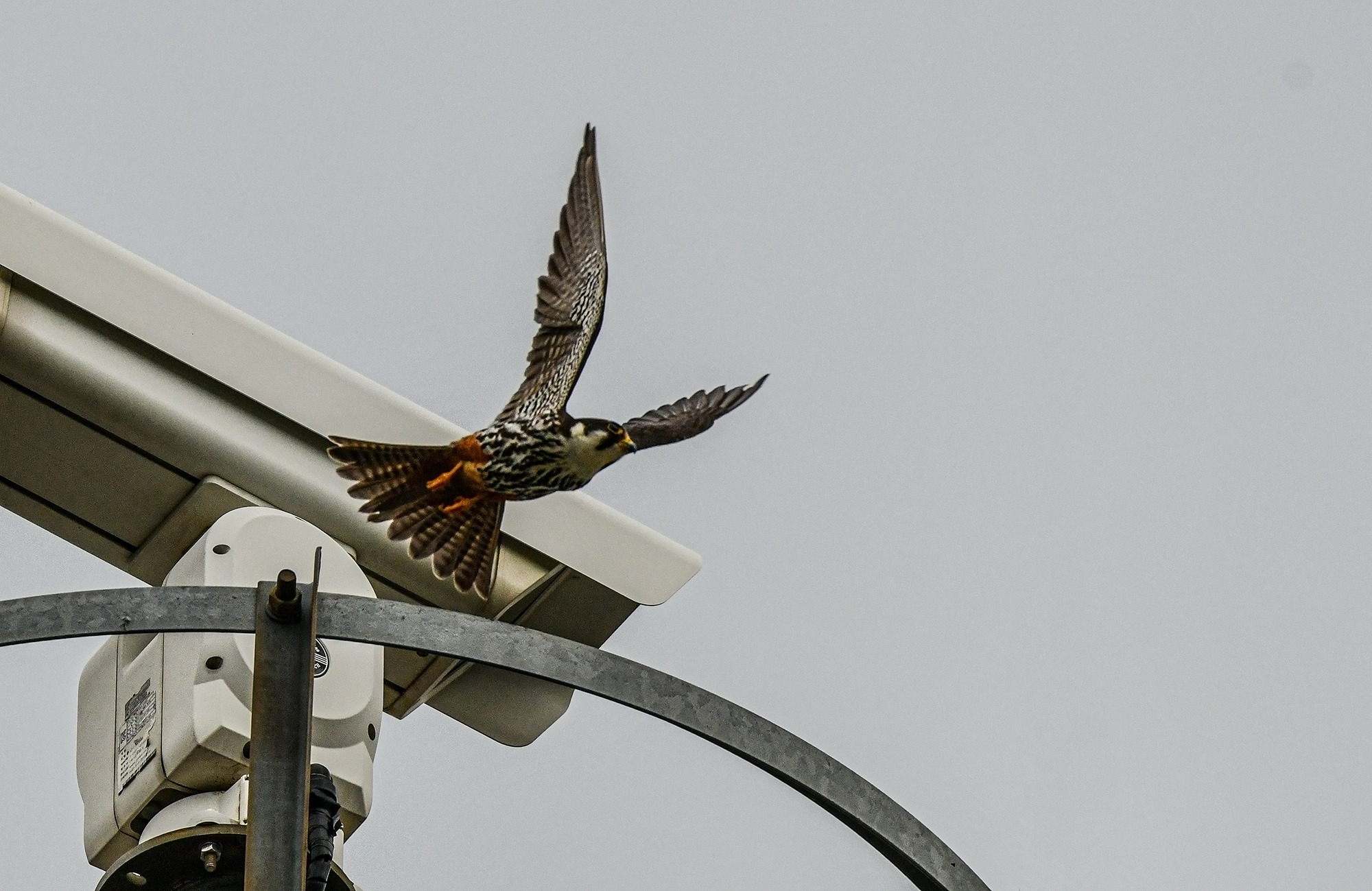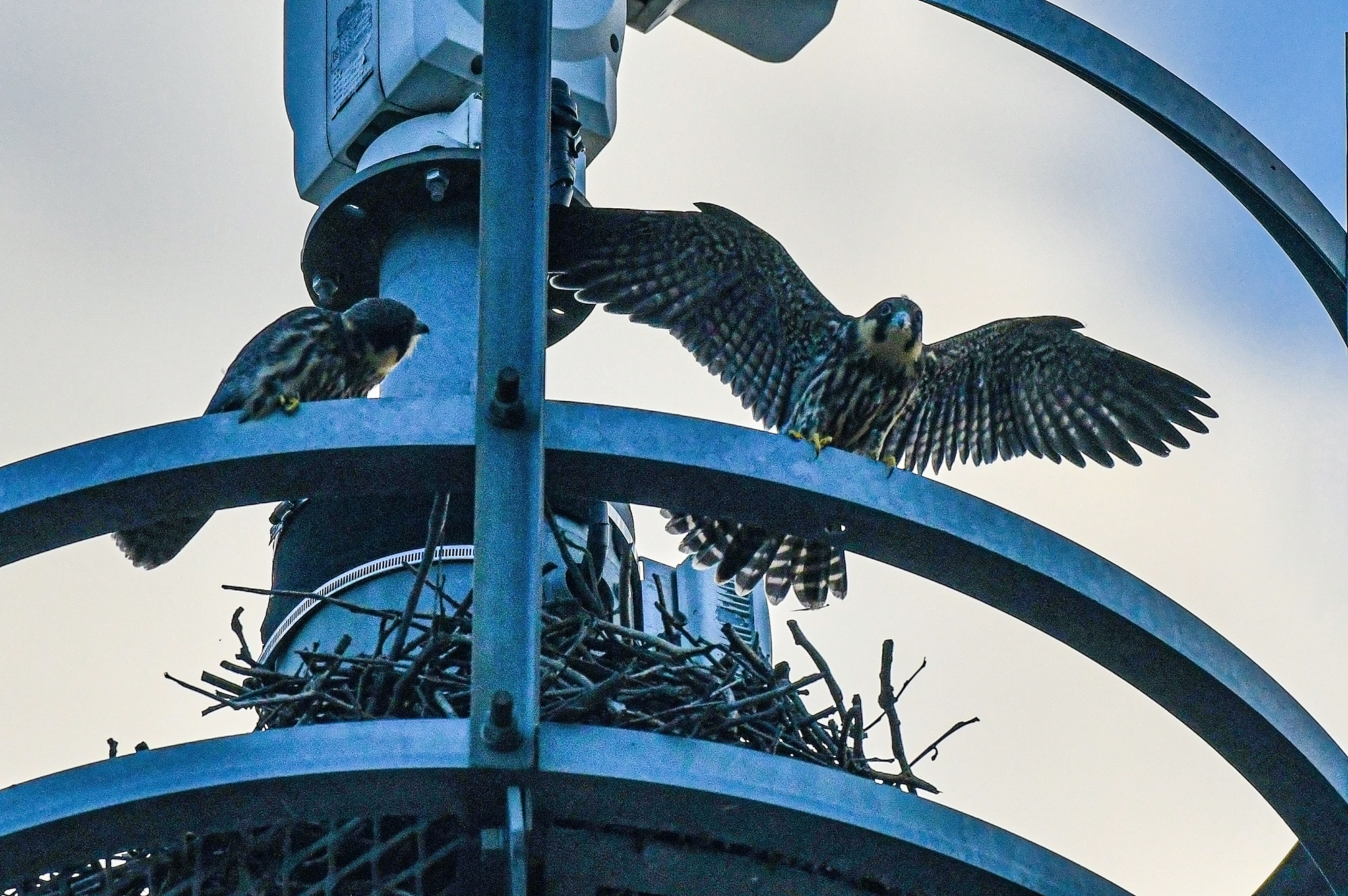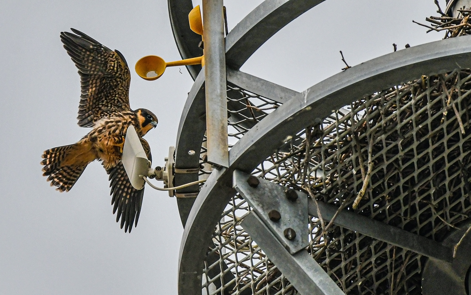 수도권의 한 통신주 높은 철탑위에 둥지를 튼 새홀리기는