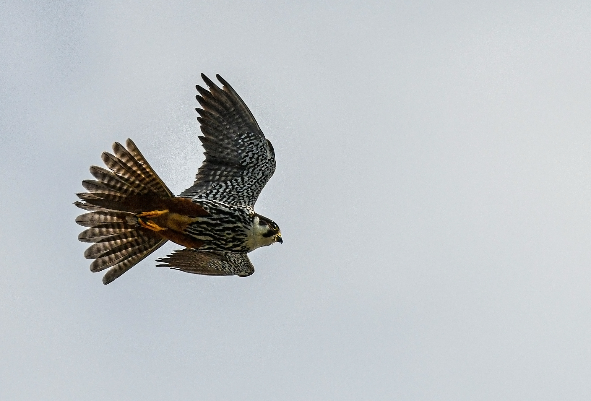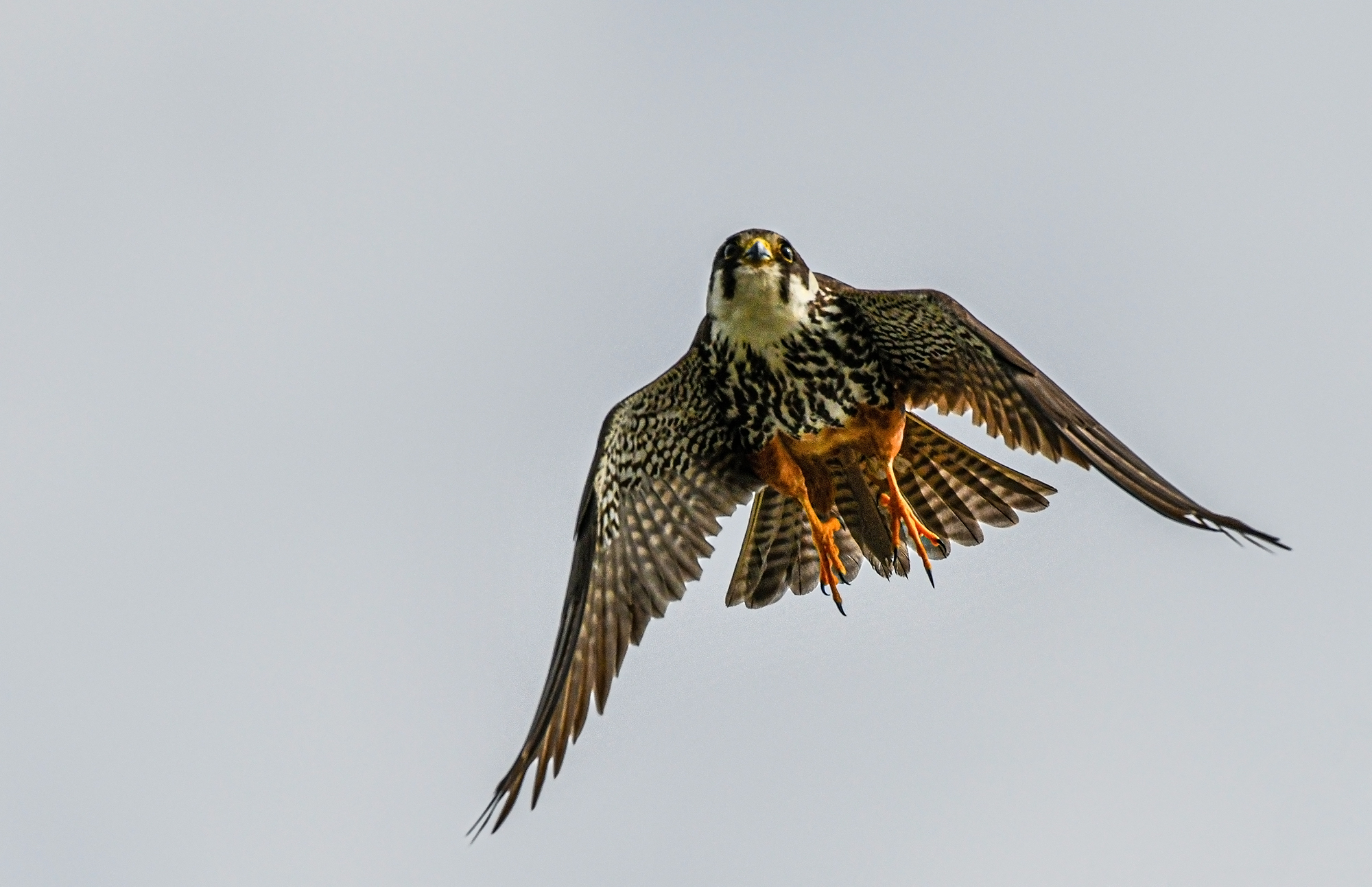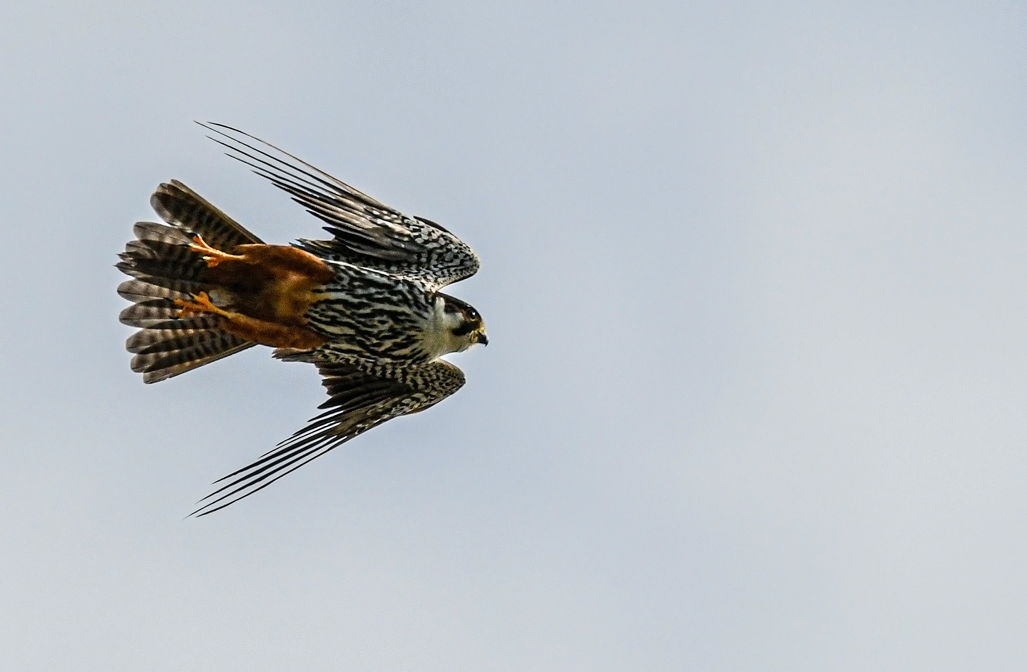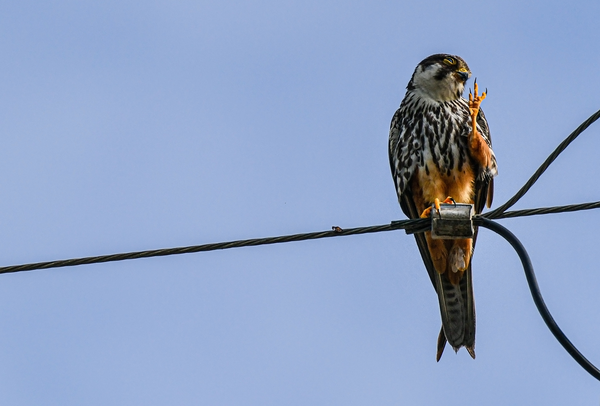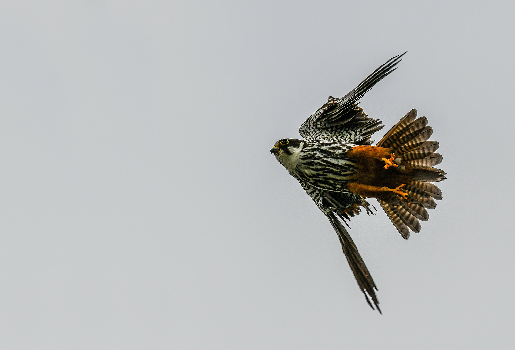 새홀리기 어미새가 새끼에게 공중에서 사냥해온 먹이감을 전달하는