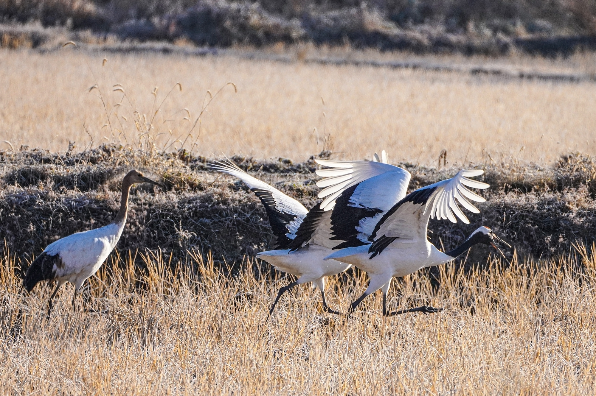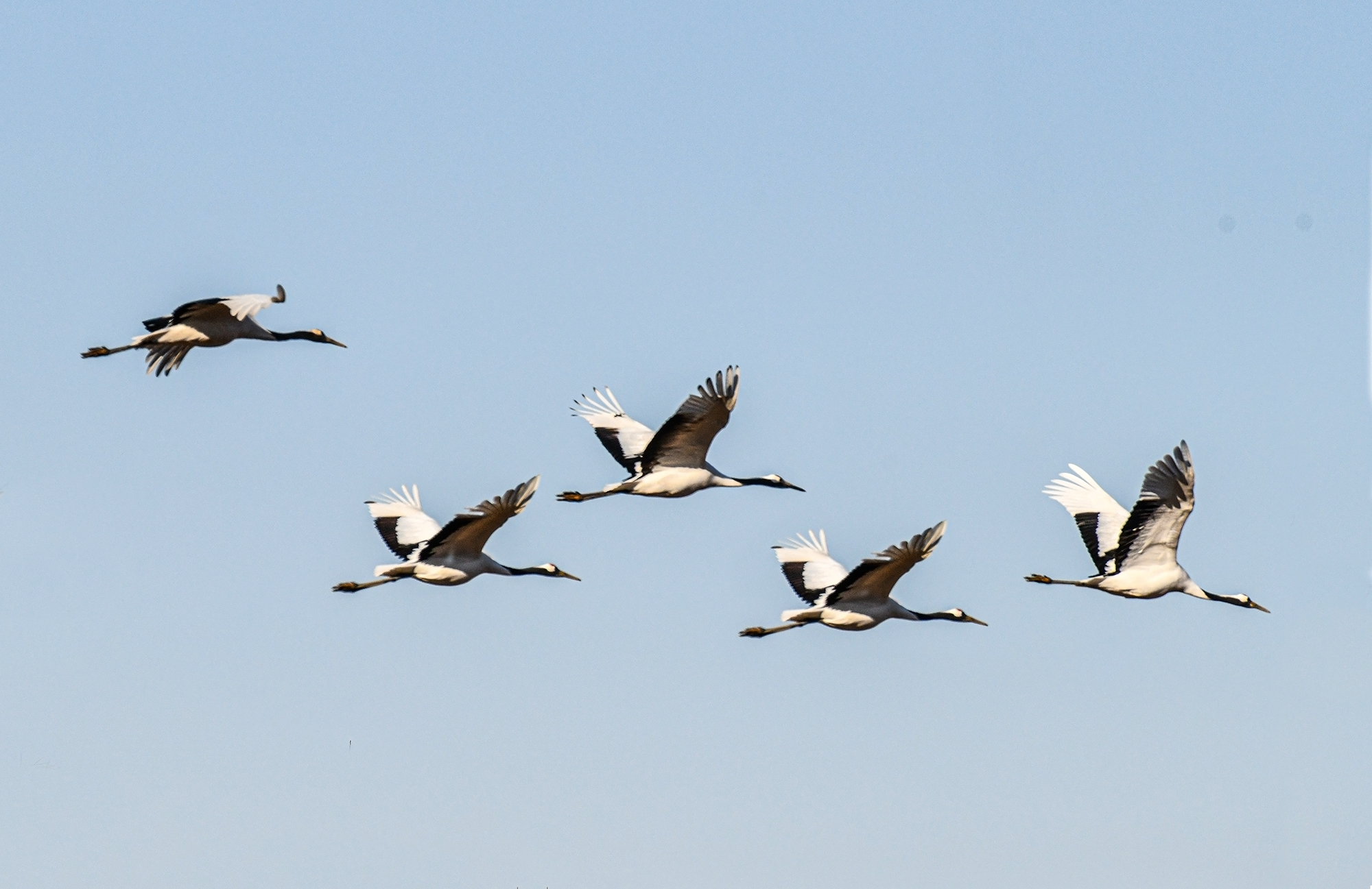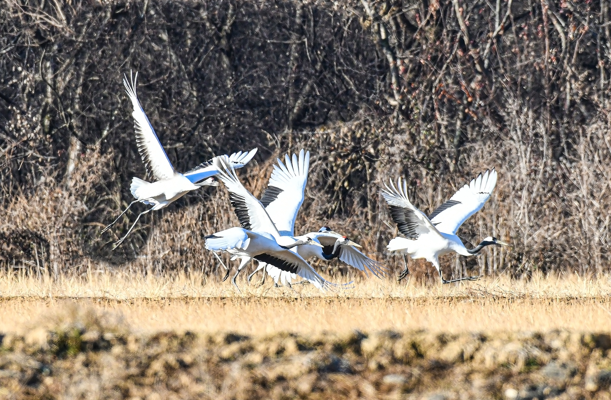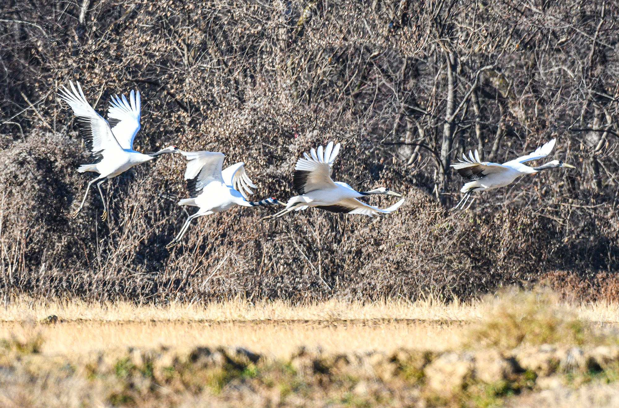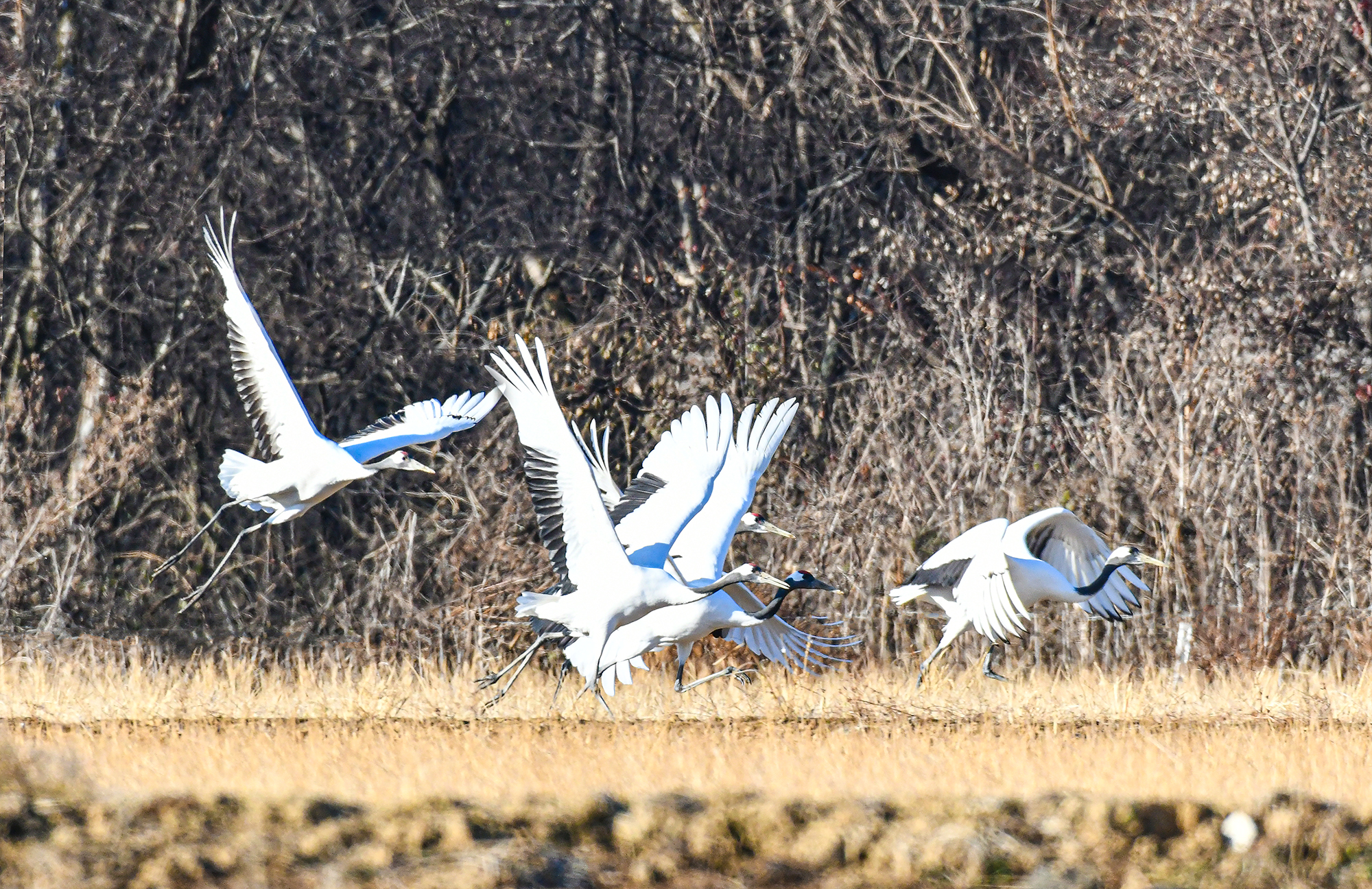 날아오는 두루미는 단정학과 재두루미가 주종을 이루고 있다.