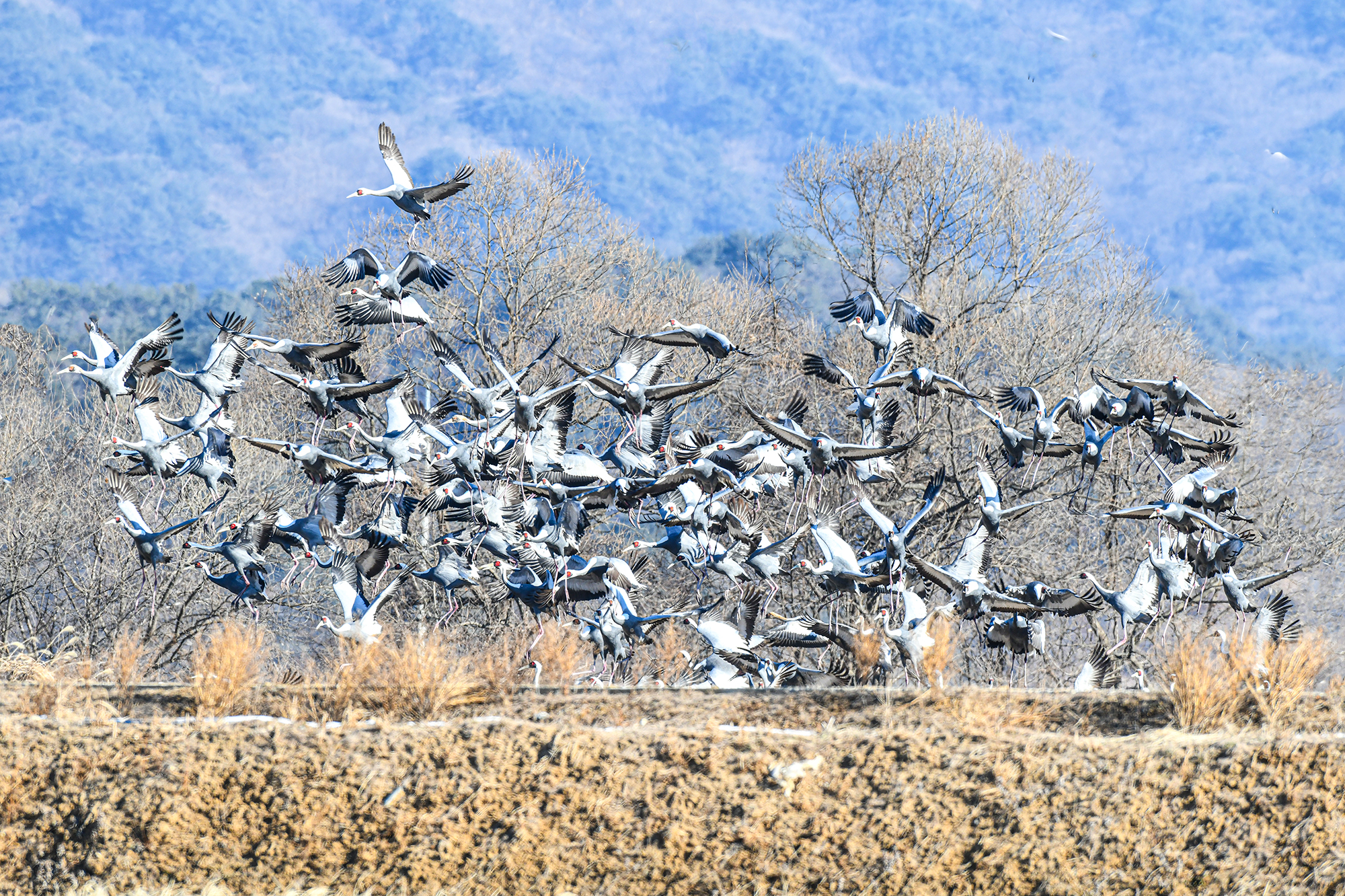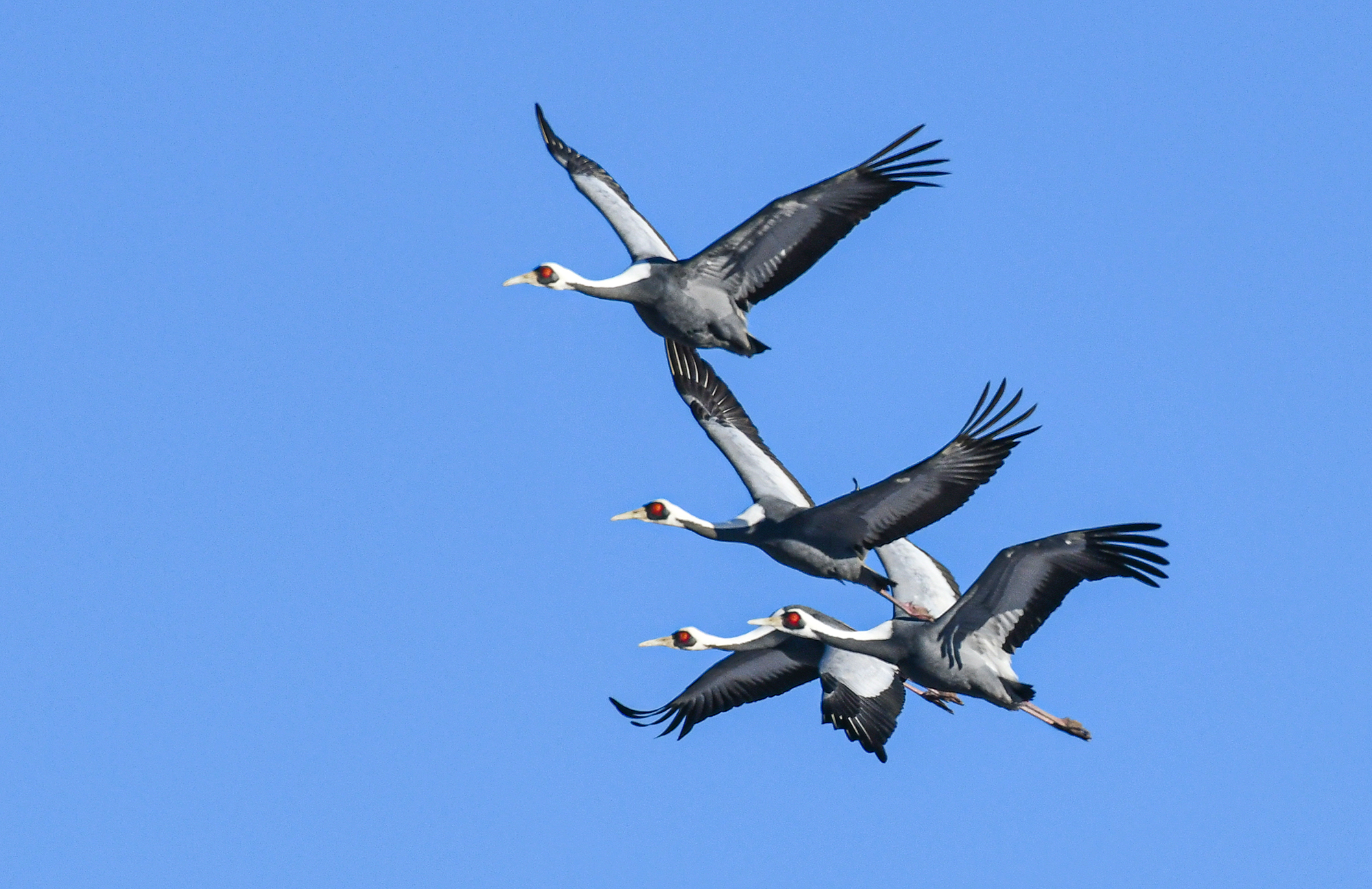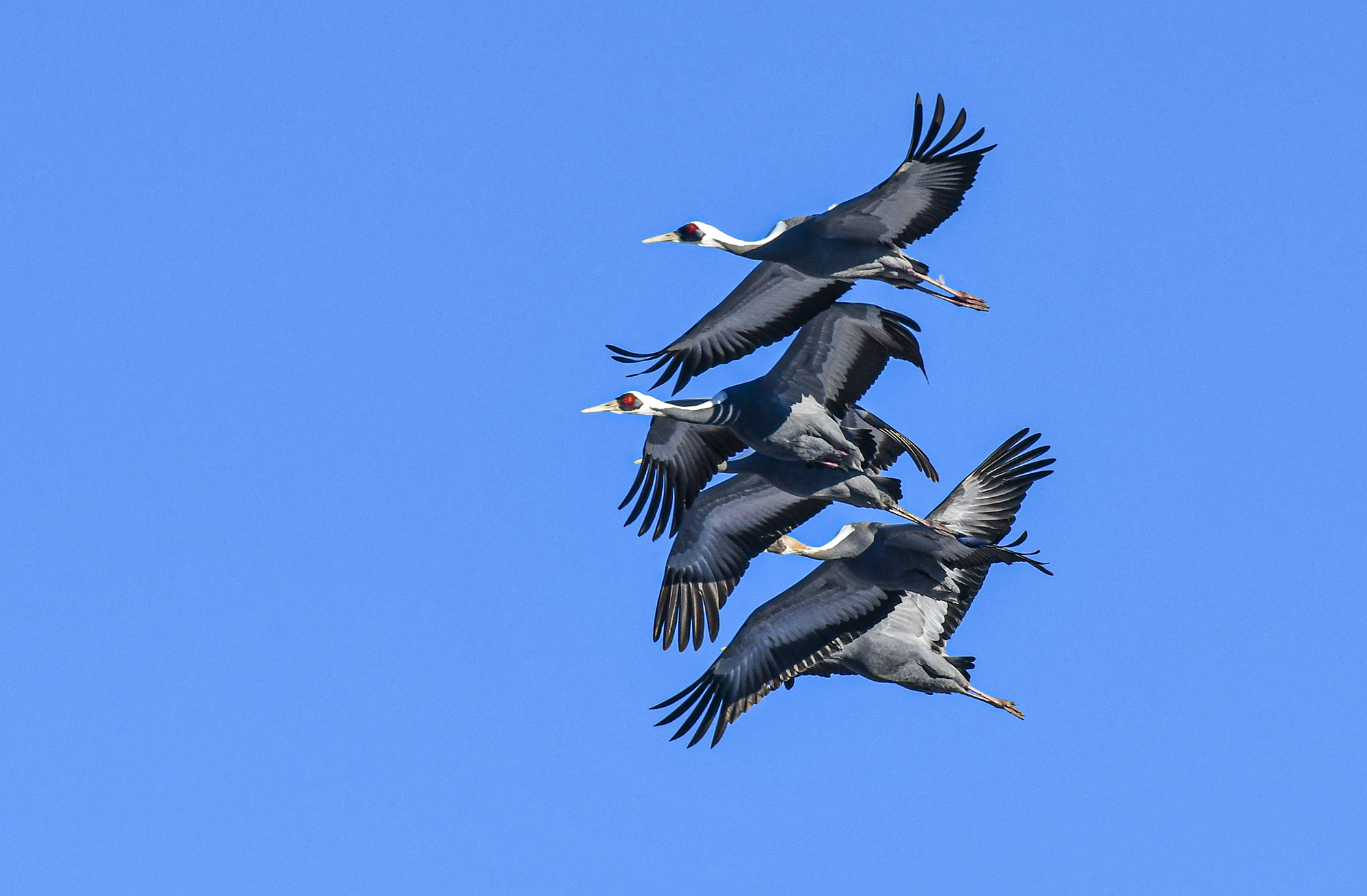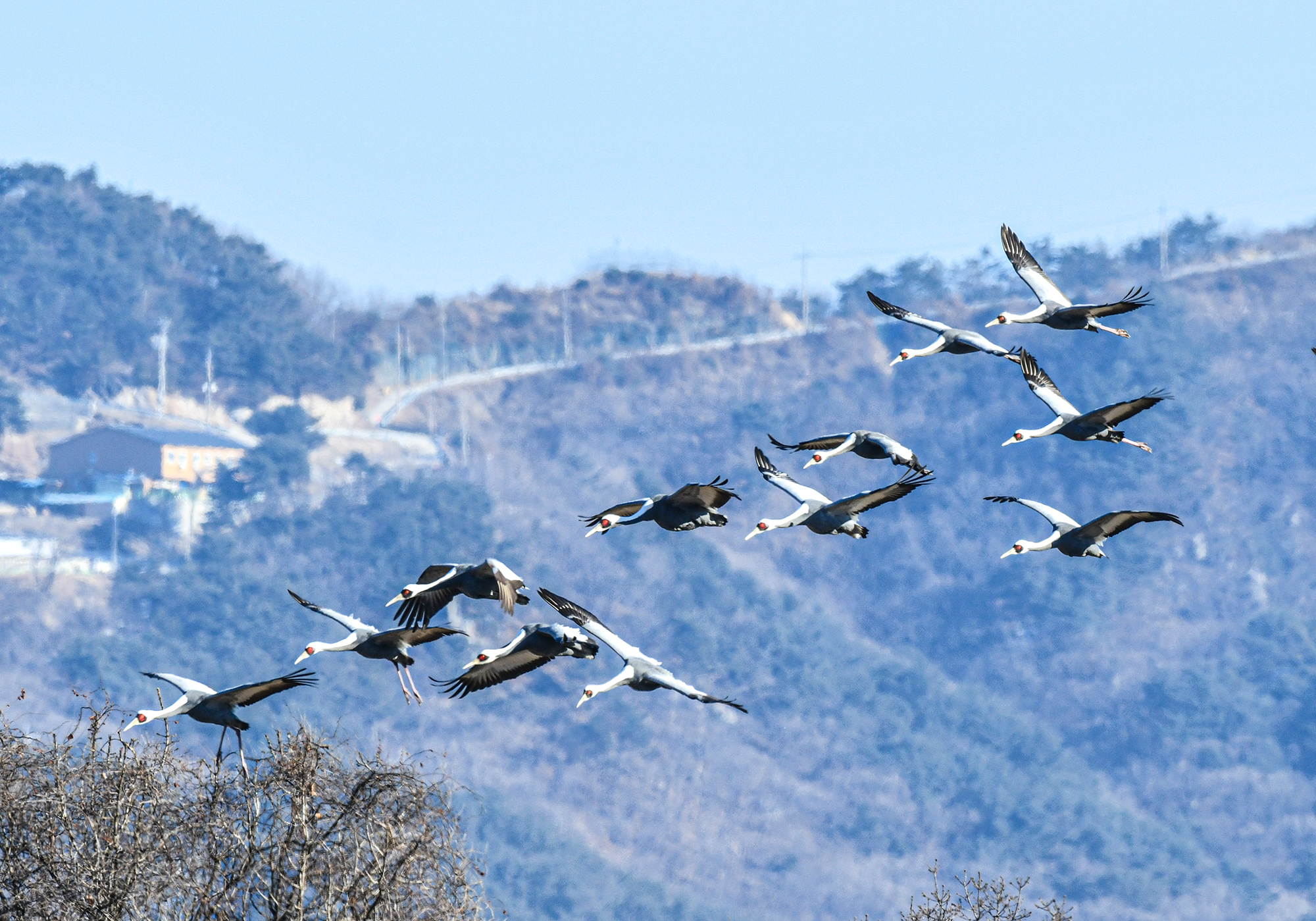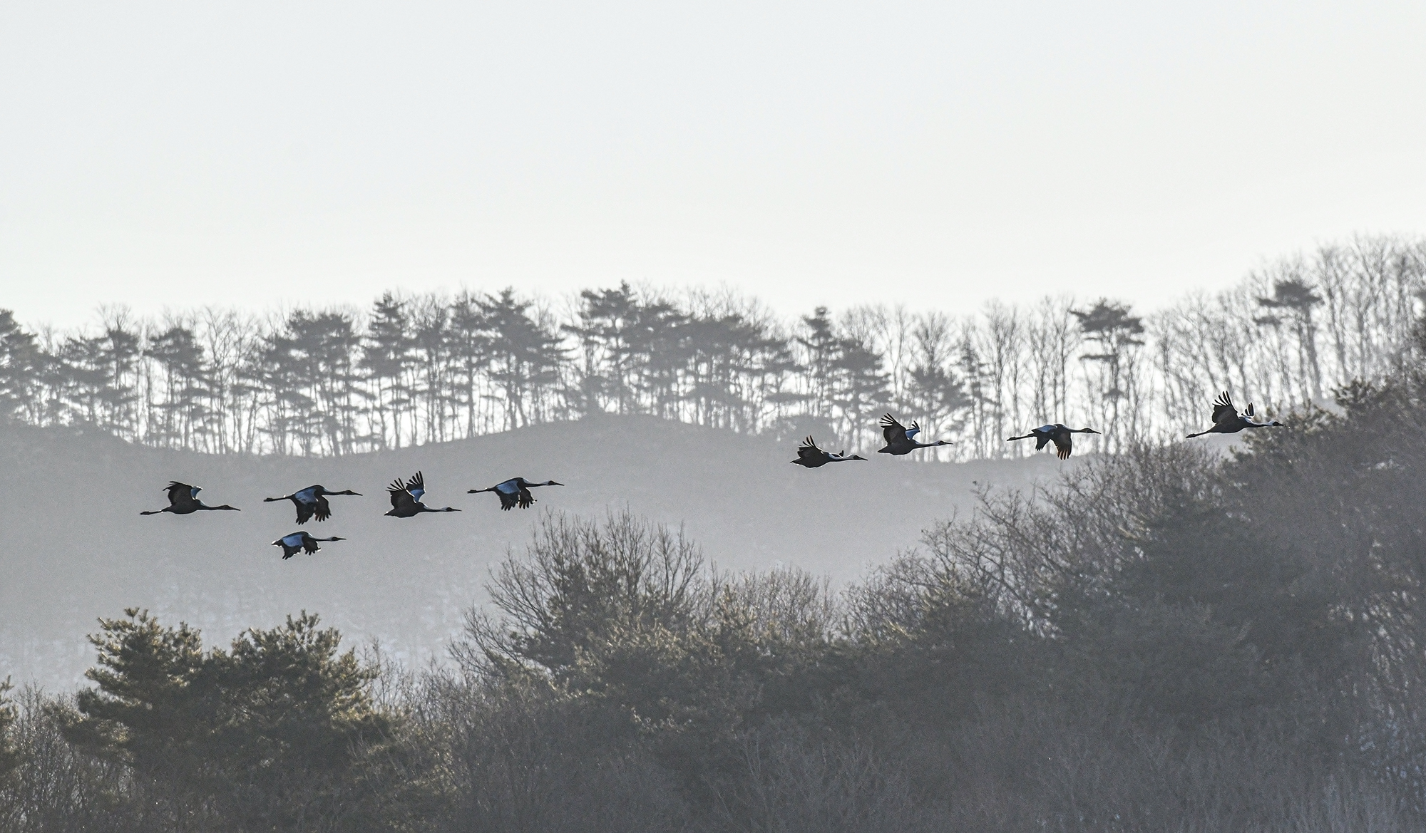 날아오는 두루미는 단정학과 재두루미가 주종을 이루고 있다.