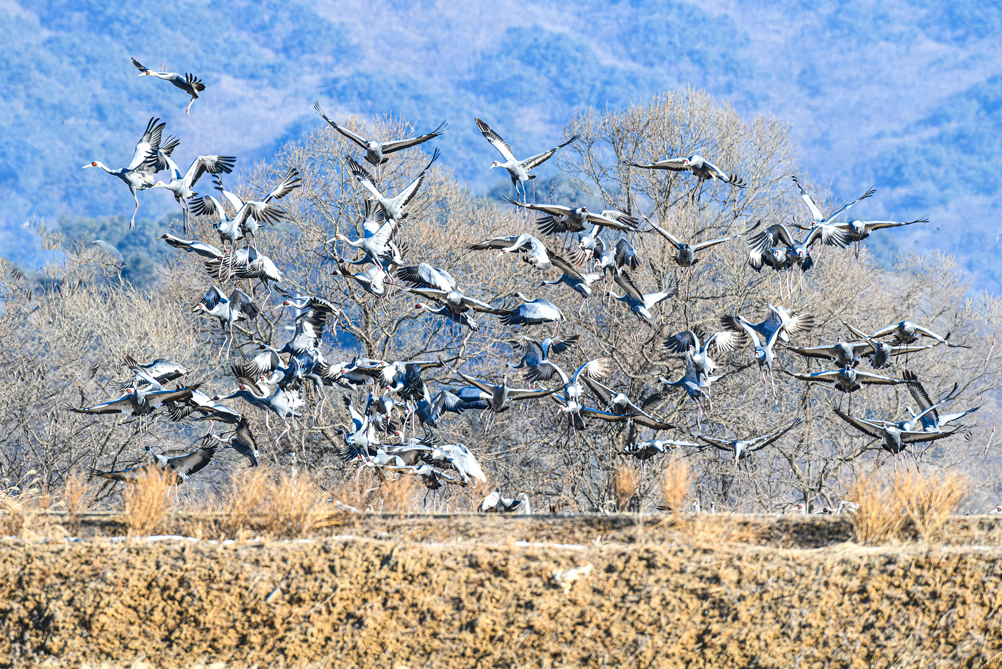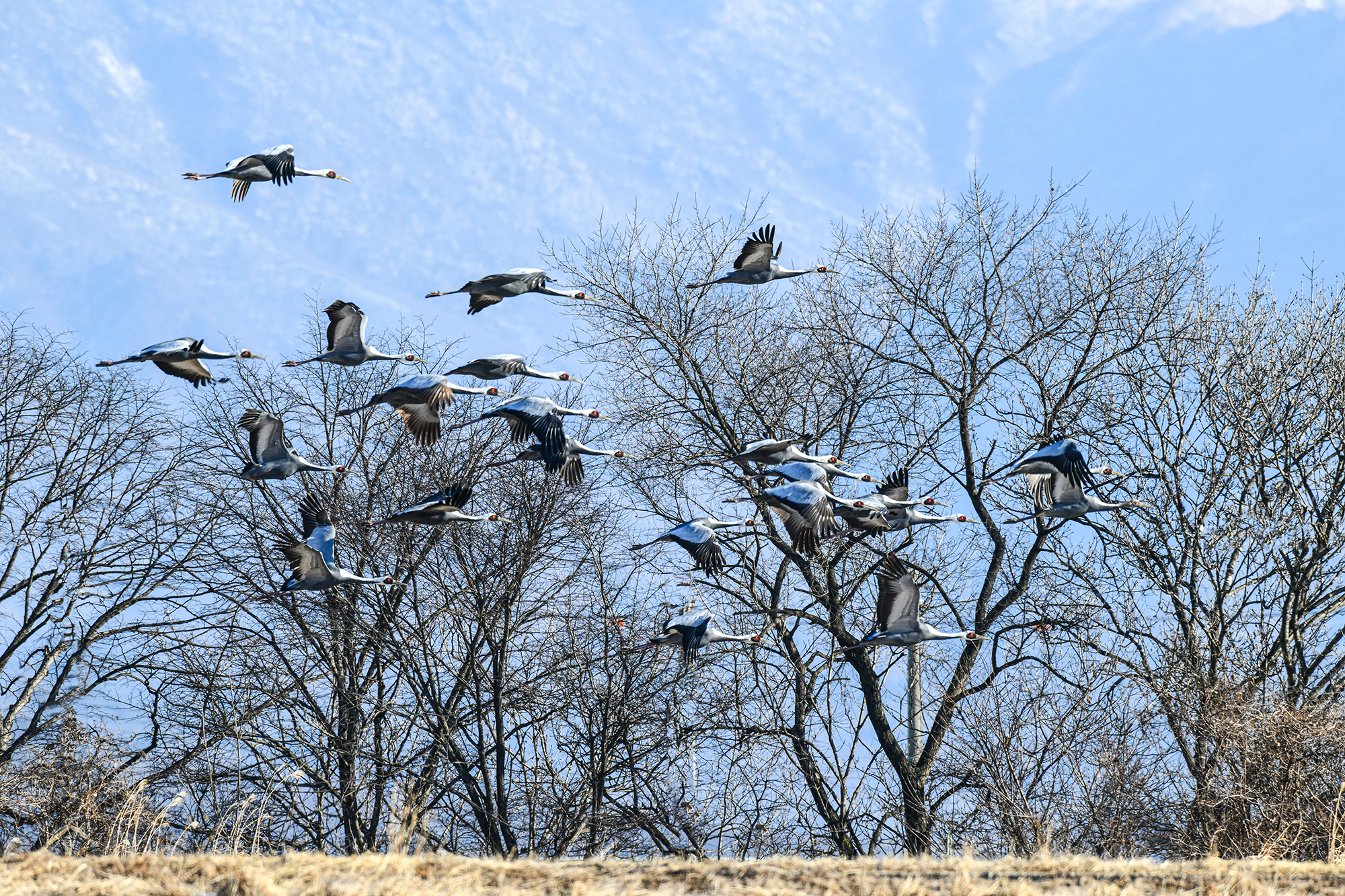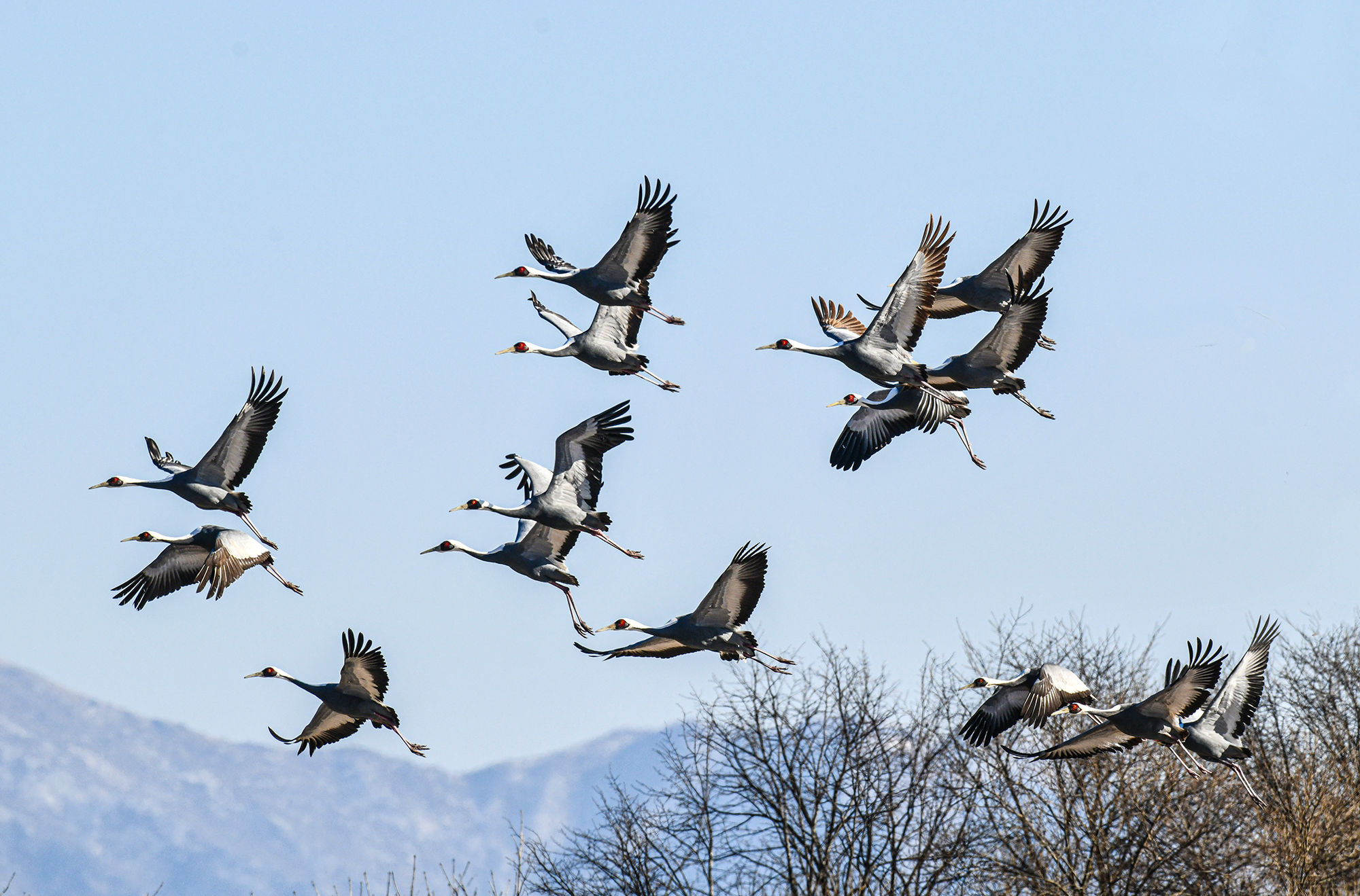 날아오는 두루미는 단정학과 재두루미가 주종을 이루고 있다.