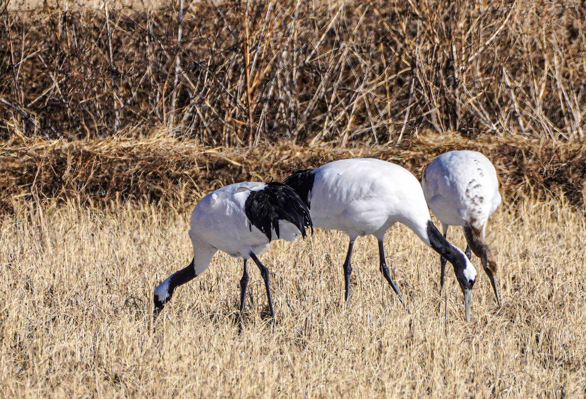 단정학은 정수리 부분이 붉은색이며 철원평야에 주로 오며
