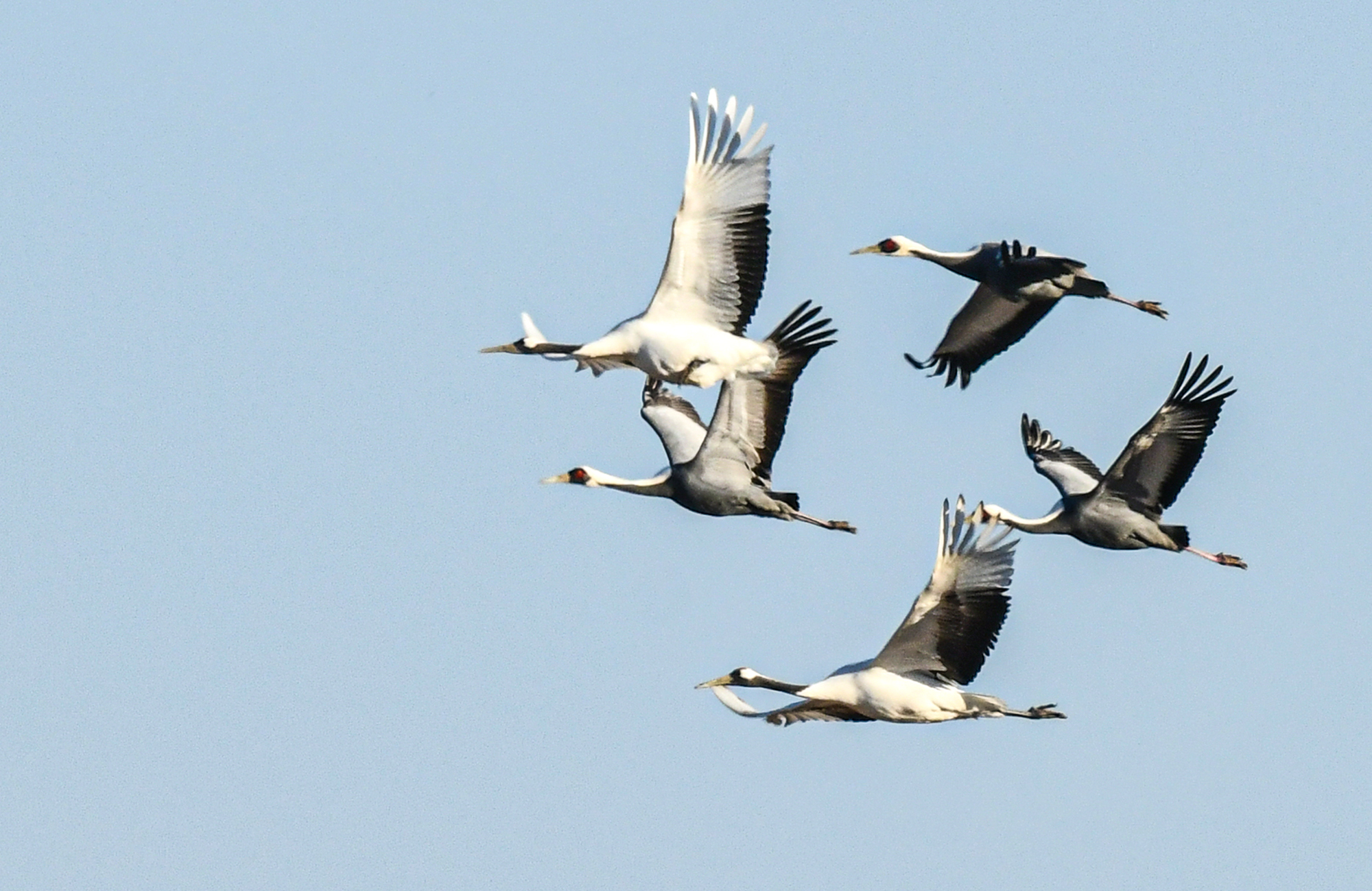 날아오는 두루미는 단정학과 재두루미가 주종을 이루고 있다.