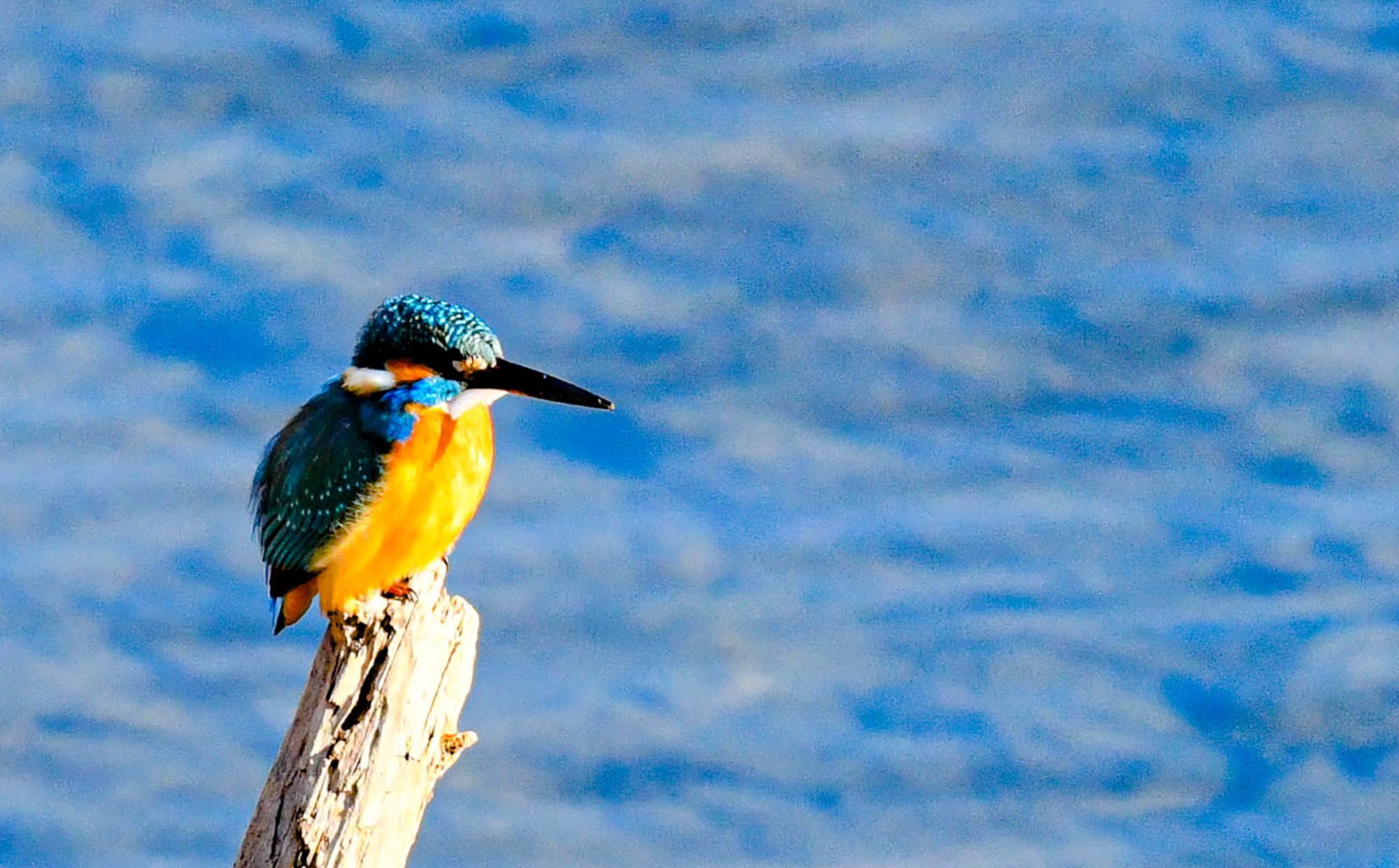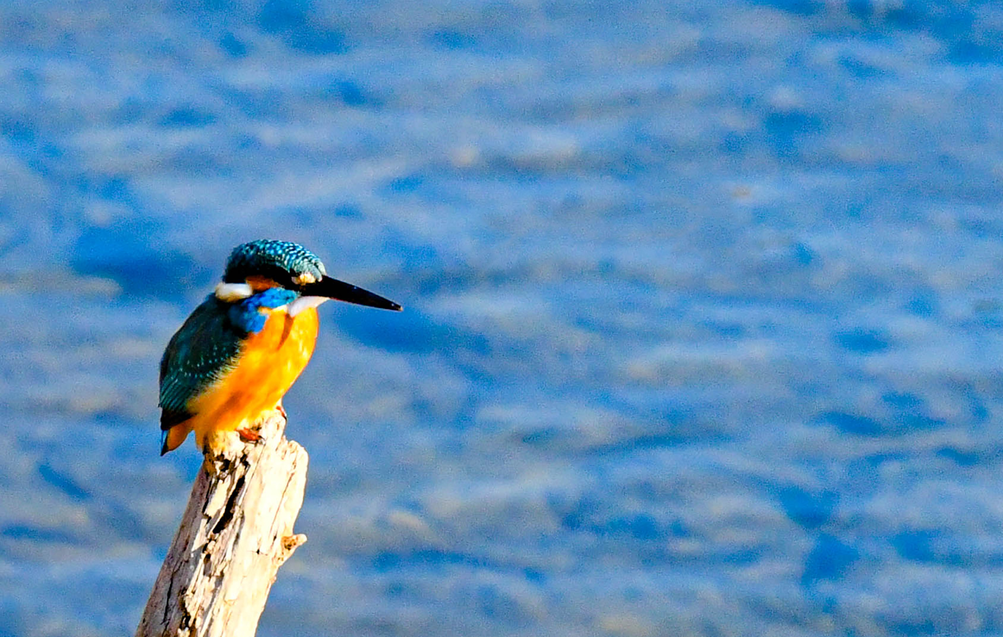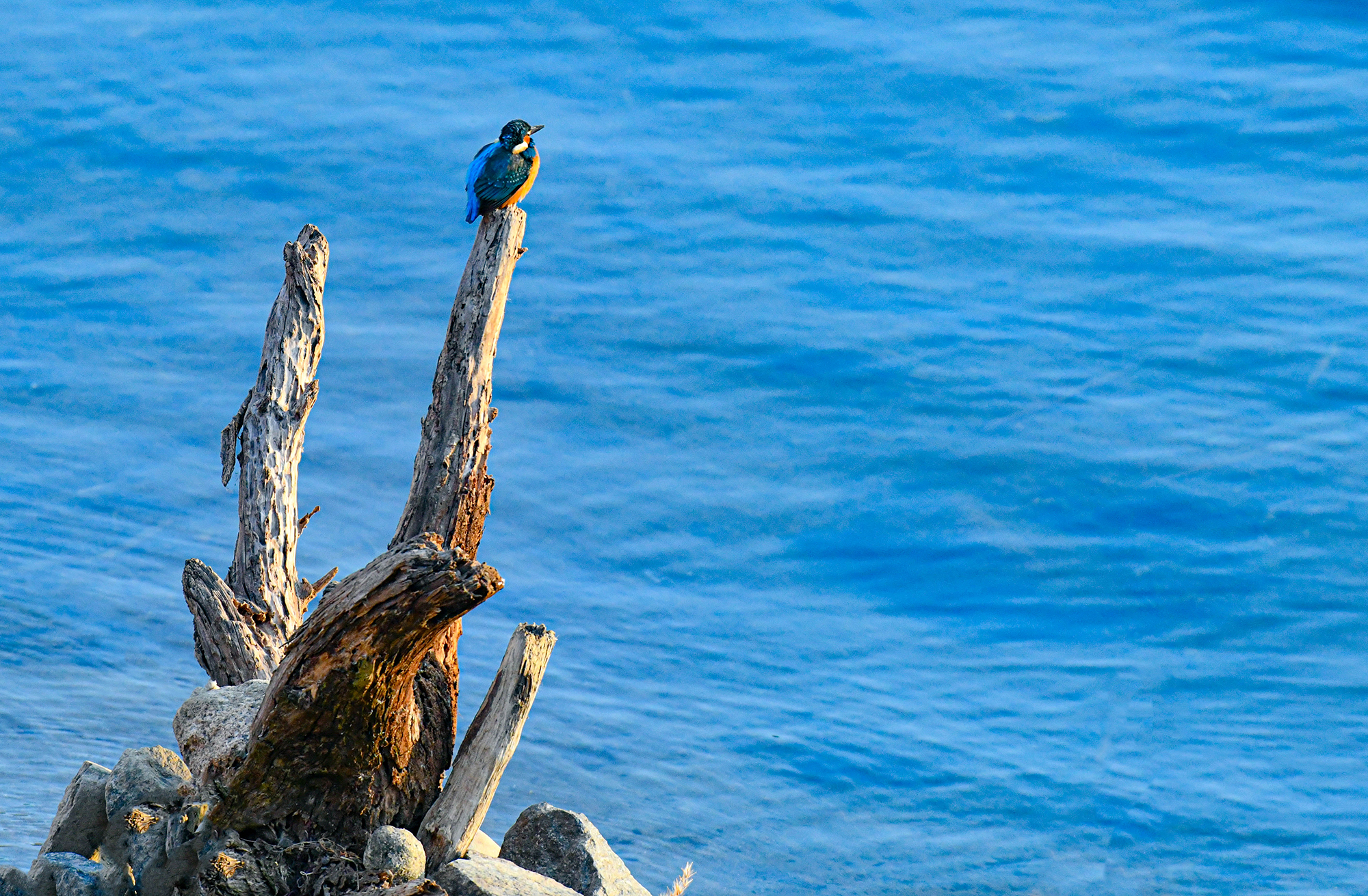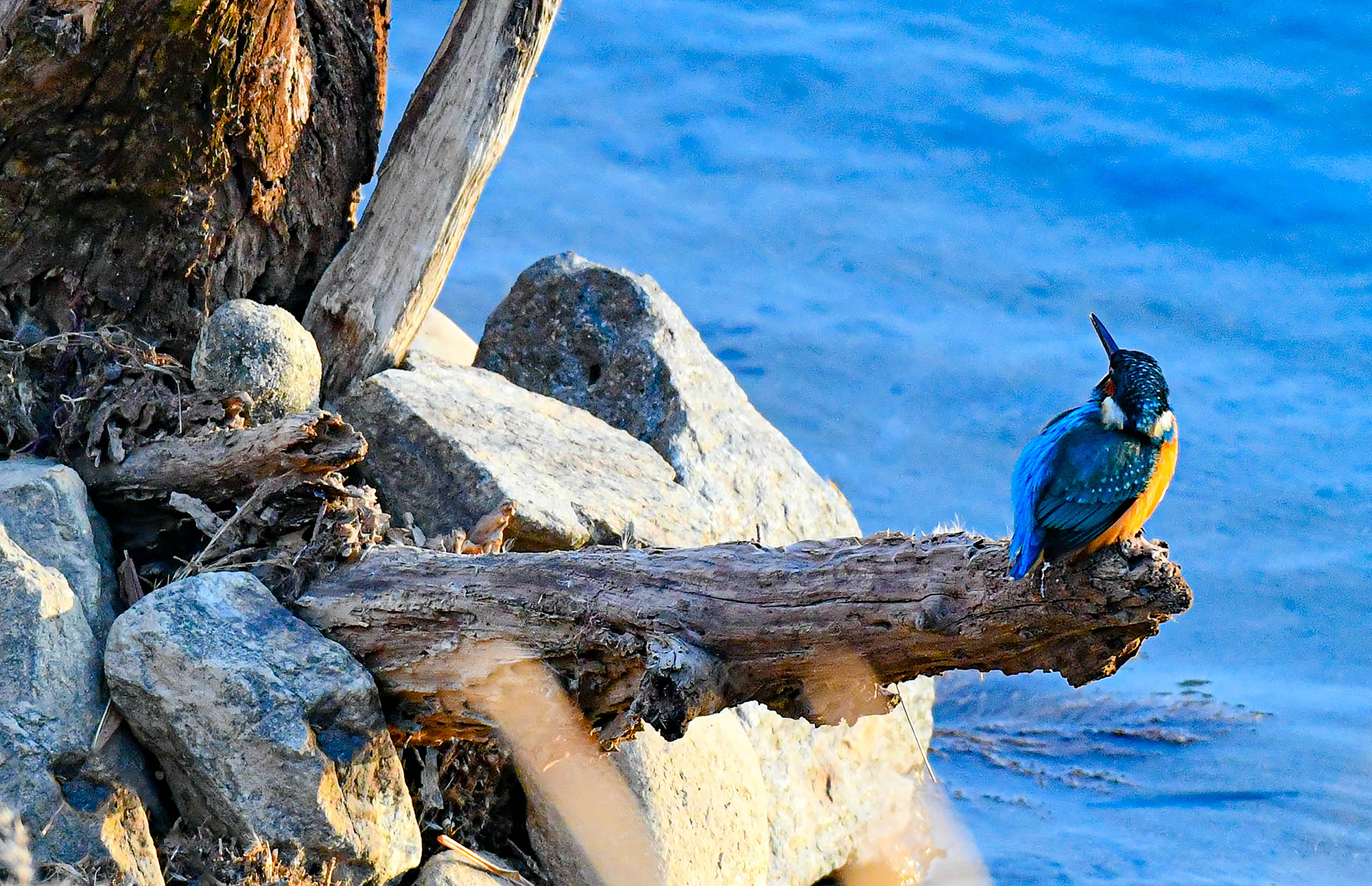 팔당에서 고니가 날기를 기다리던 중 우연히 물총새를 만났다,