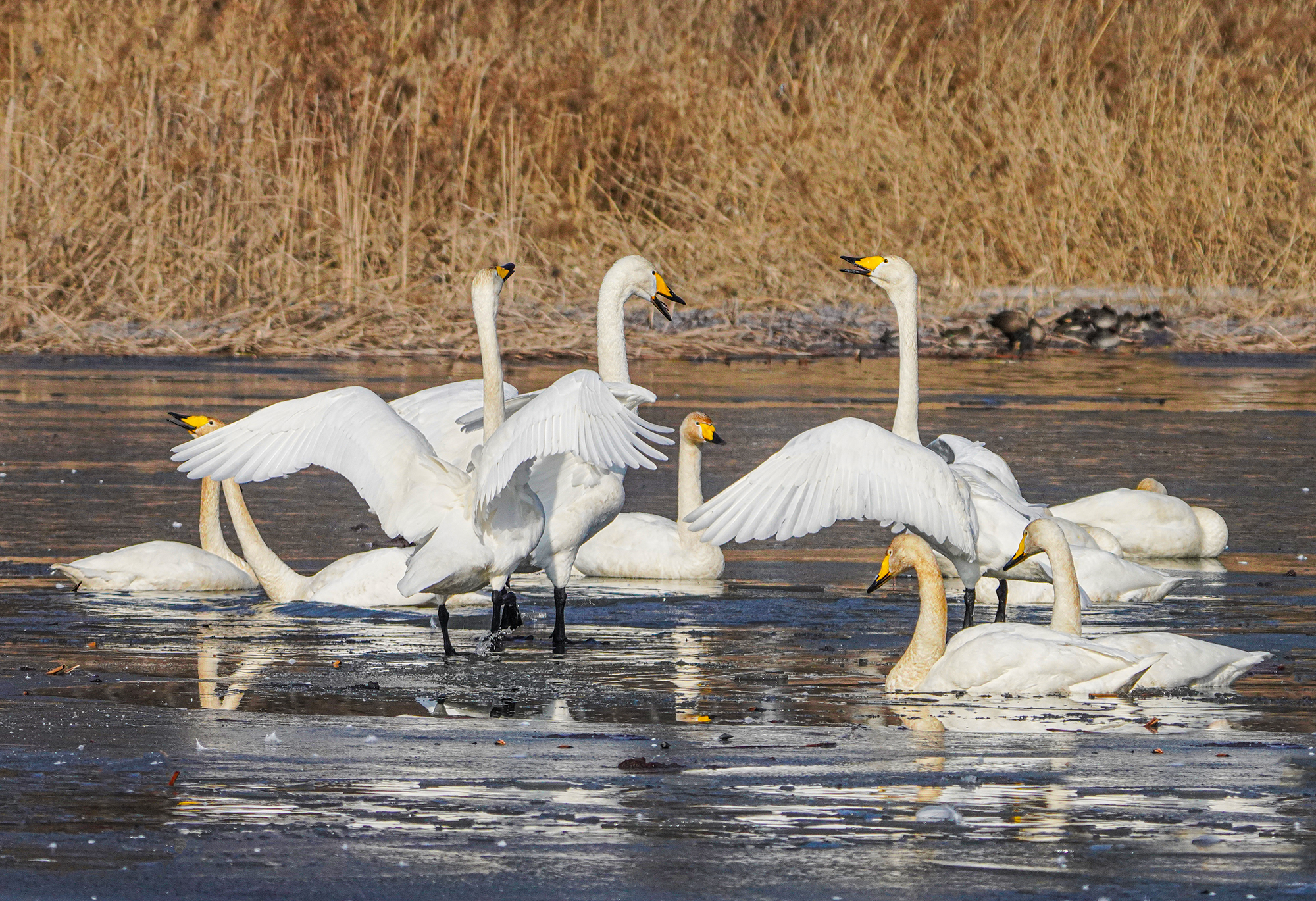 모습은 더할나위 없이 아름답다, 하지만 고니가 호수에서 무리지어