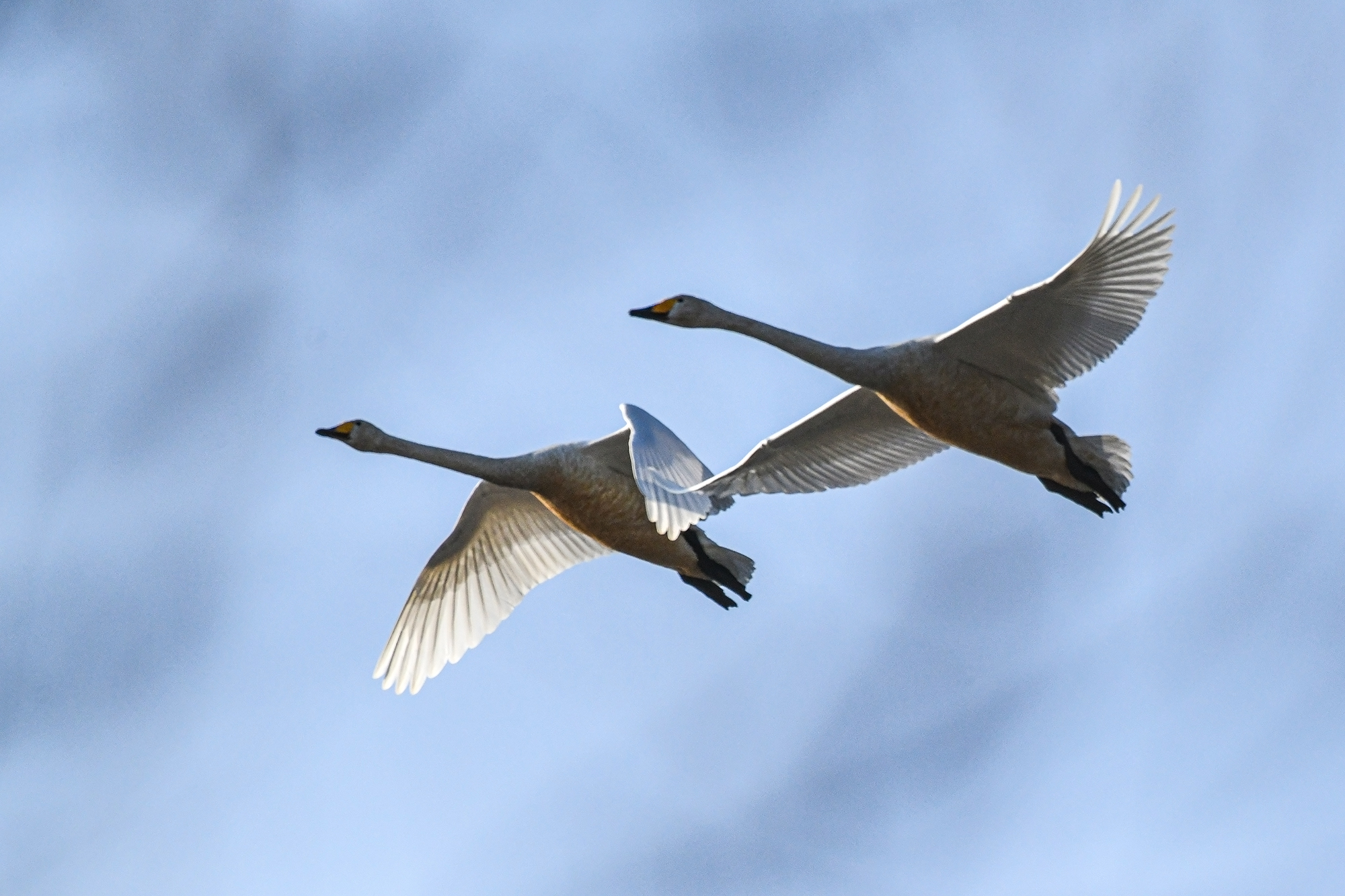 한 200여 마리의 고니들이 한 30여분 만에 모두 날아갔다,