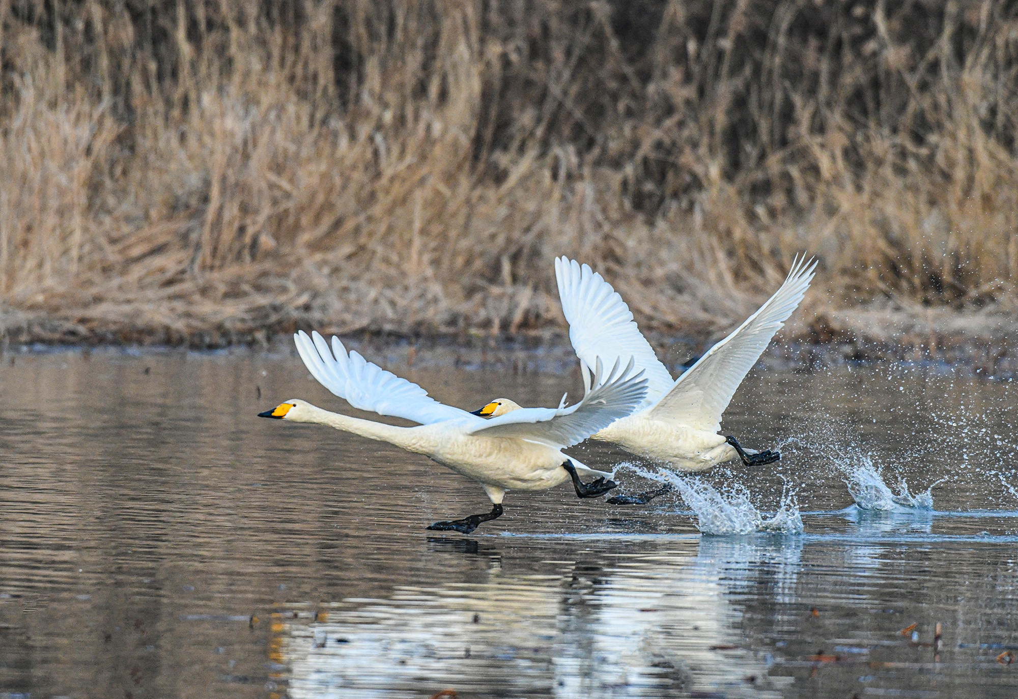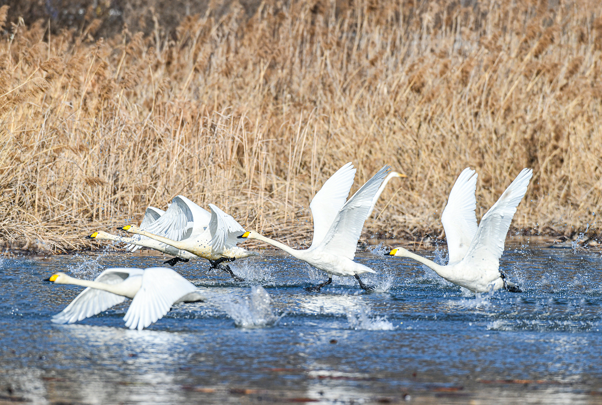 고니 백조가 물을 박차고 하늘로 날아오르는 모습은 마치