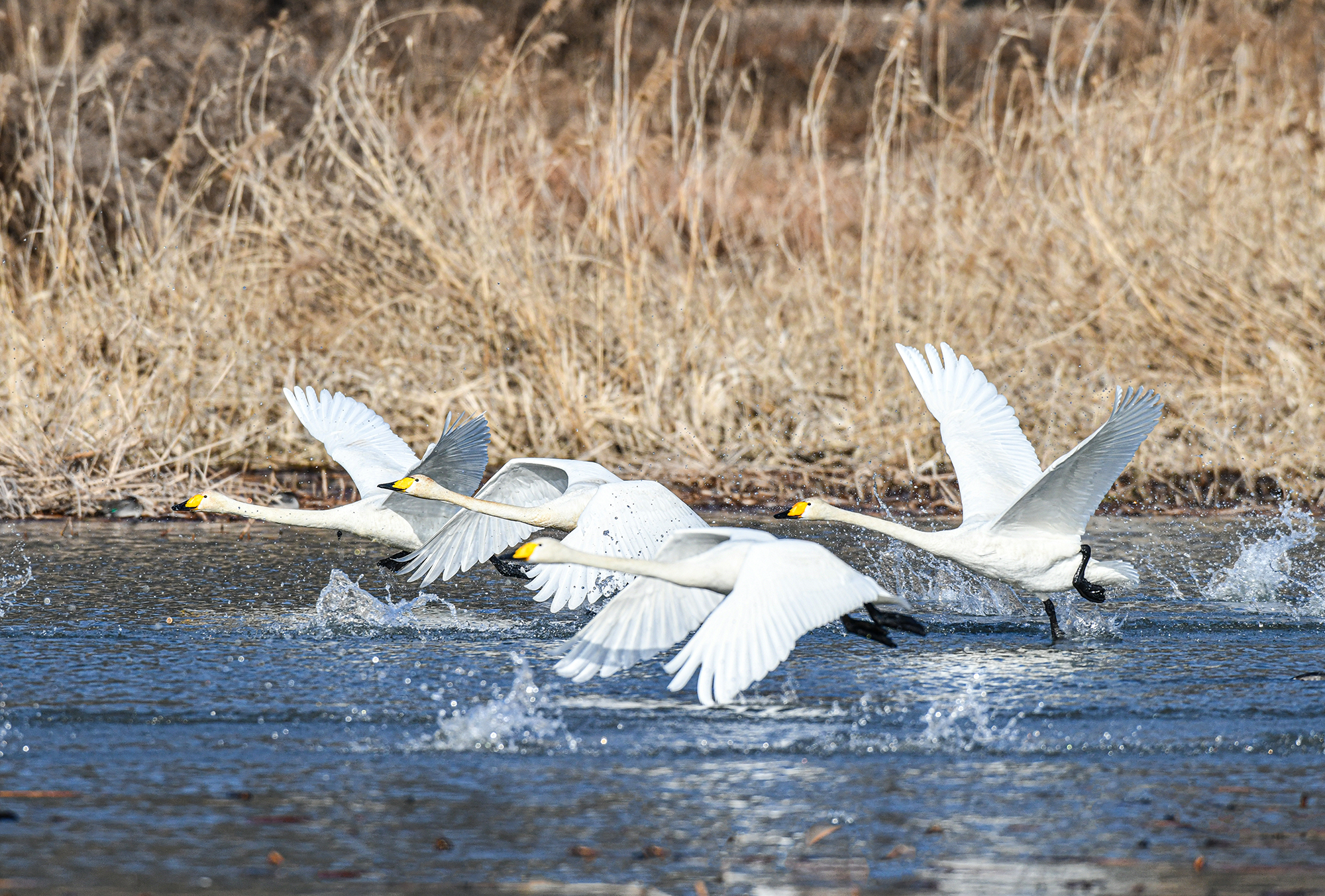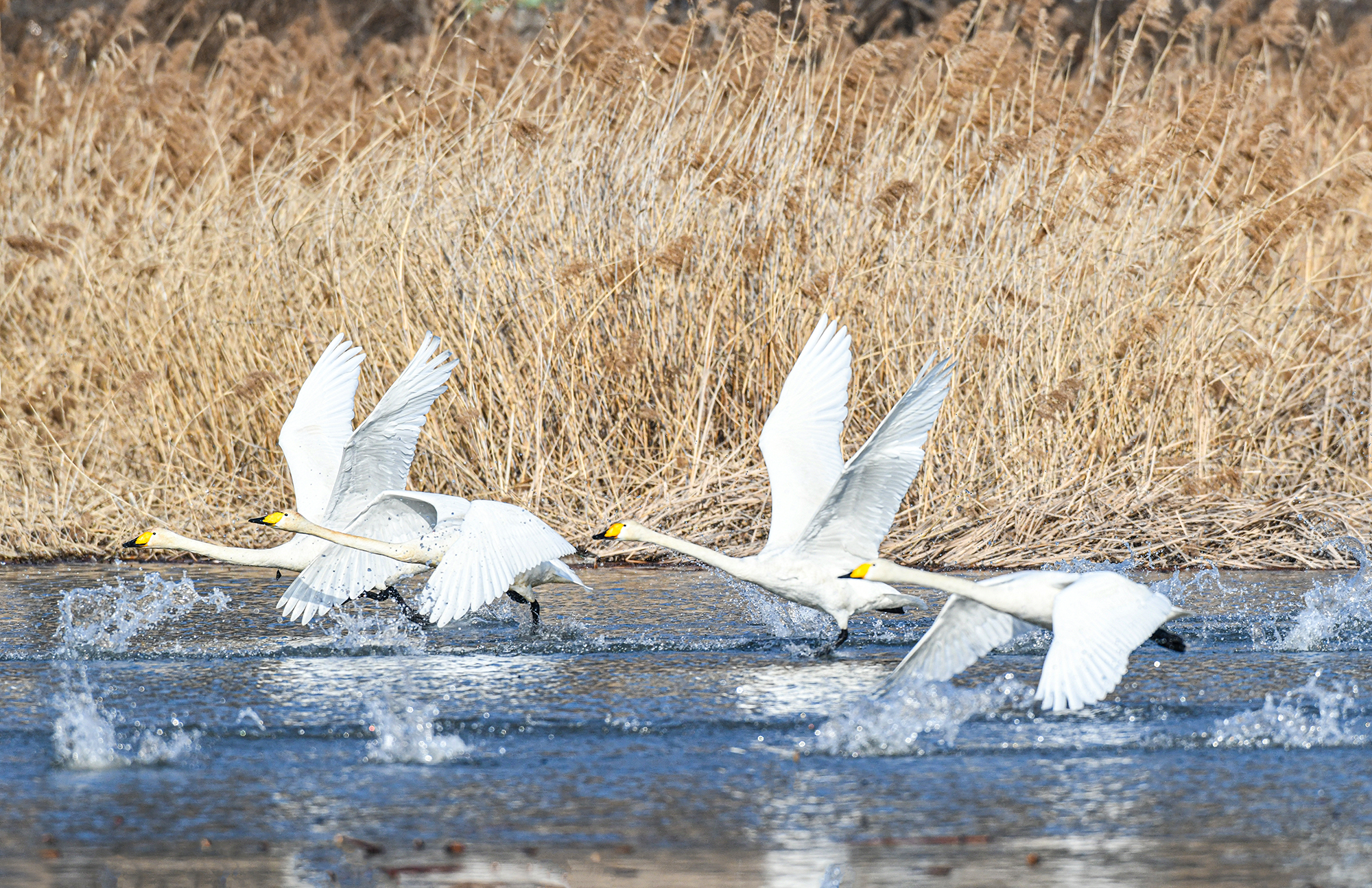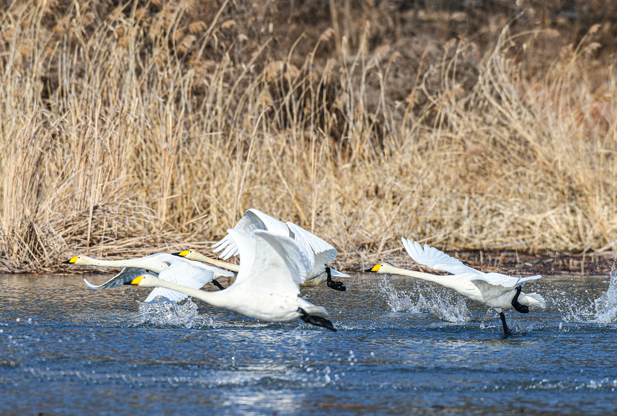 고니 백조가 물을 박차고 하늘로 날아오르는 모습은 마치
