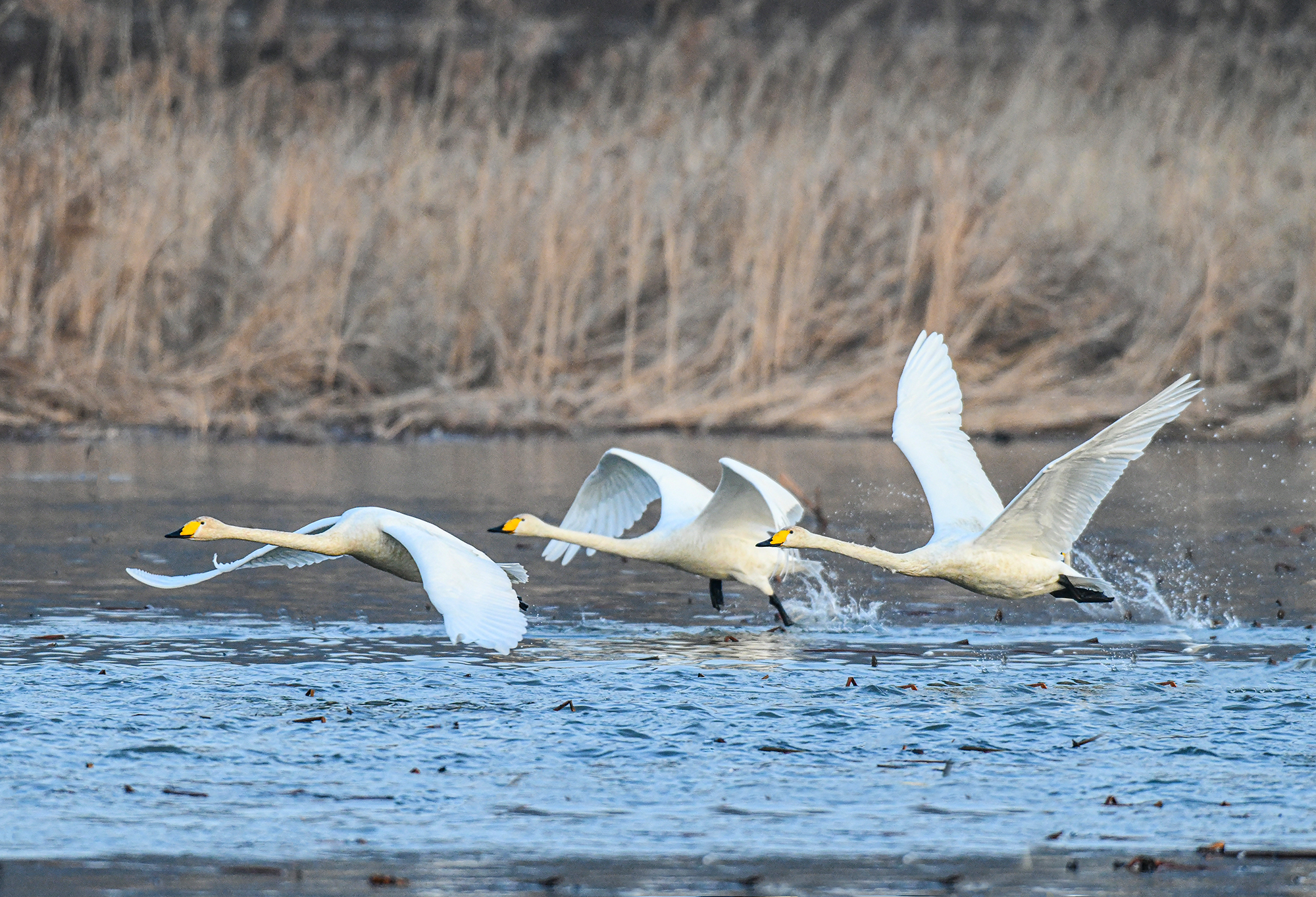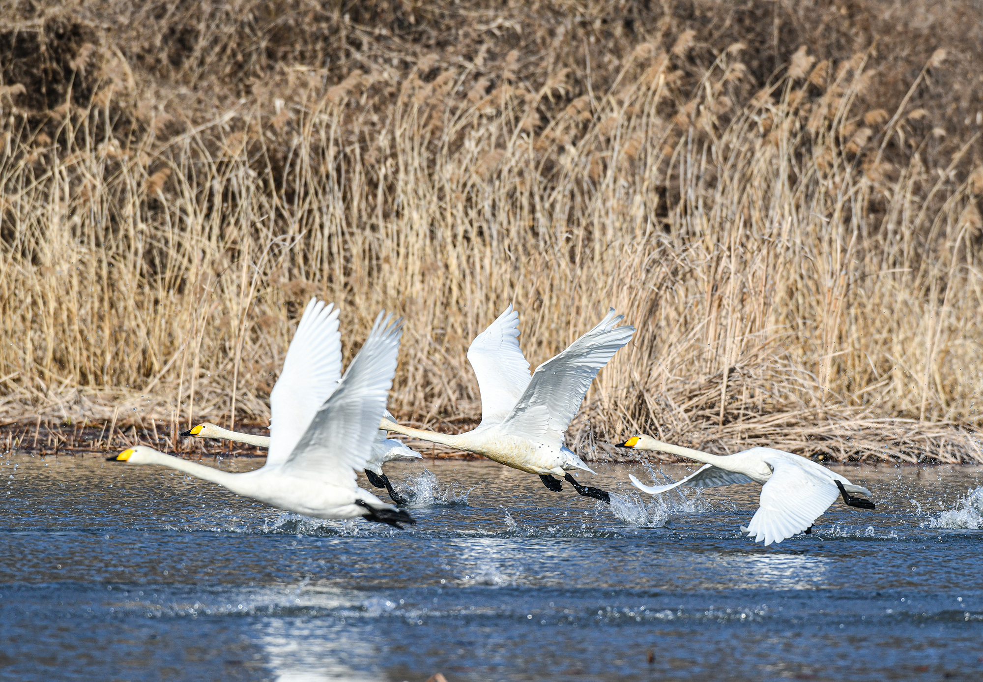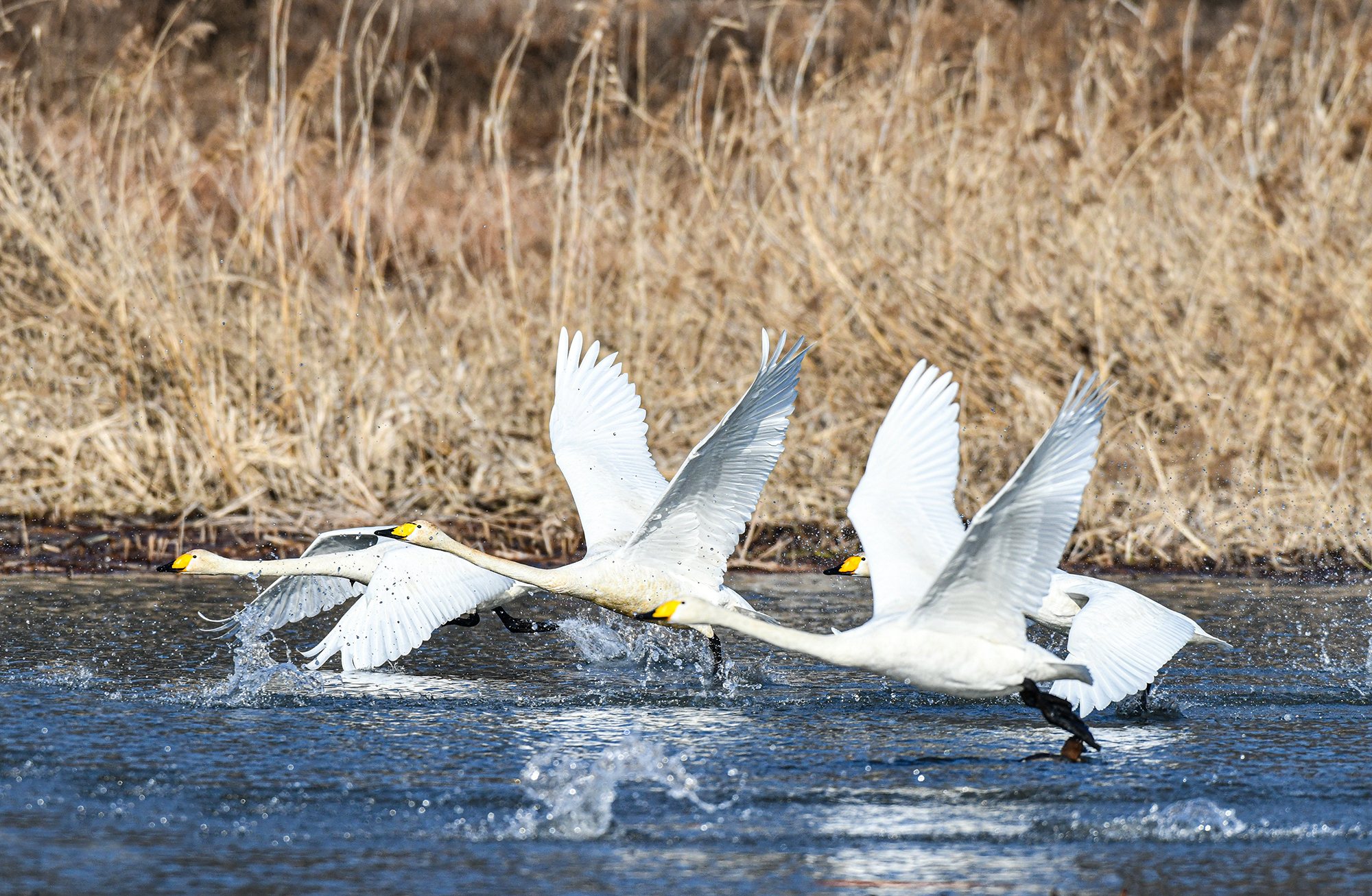 고니 백조가 물을 박차고 하늘로 날아오르는 모습은 마치