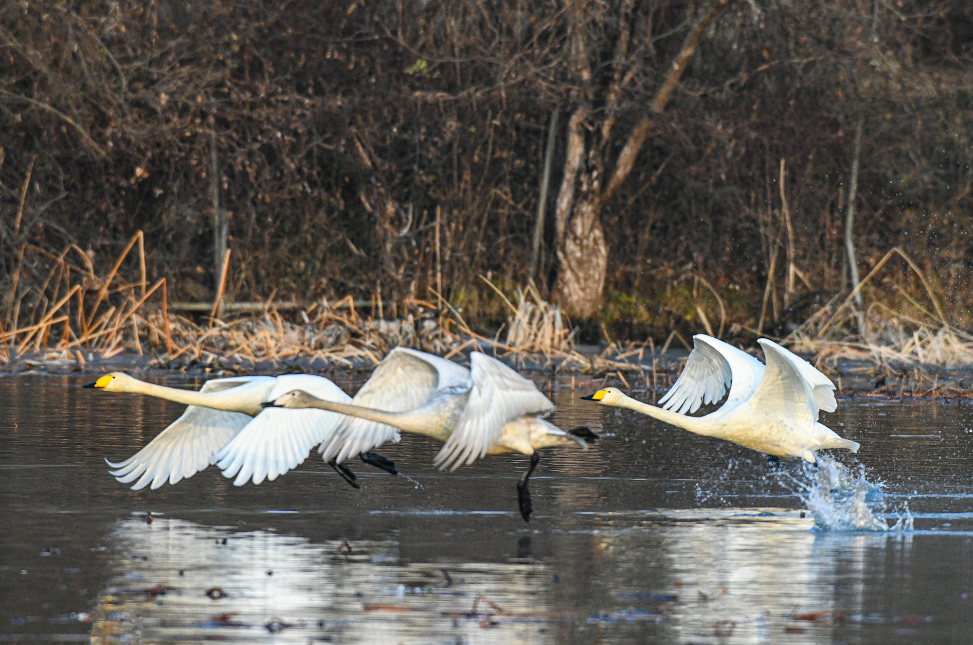 한 200여 마리의 고니들이 한 30여분 만에 모두 날아갔다,