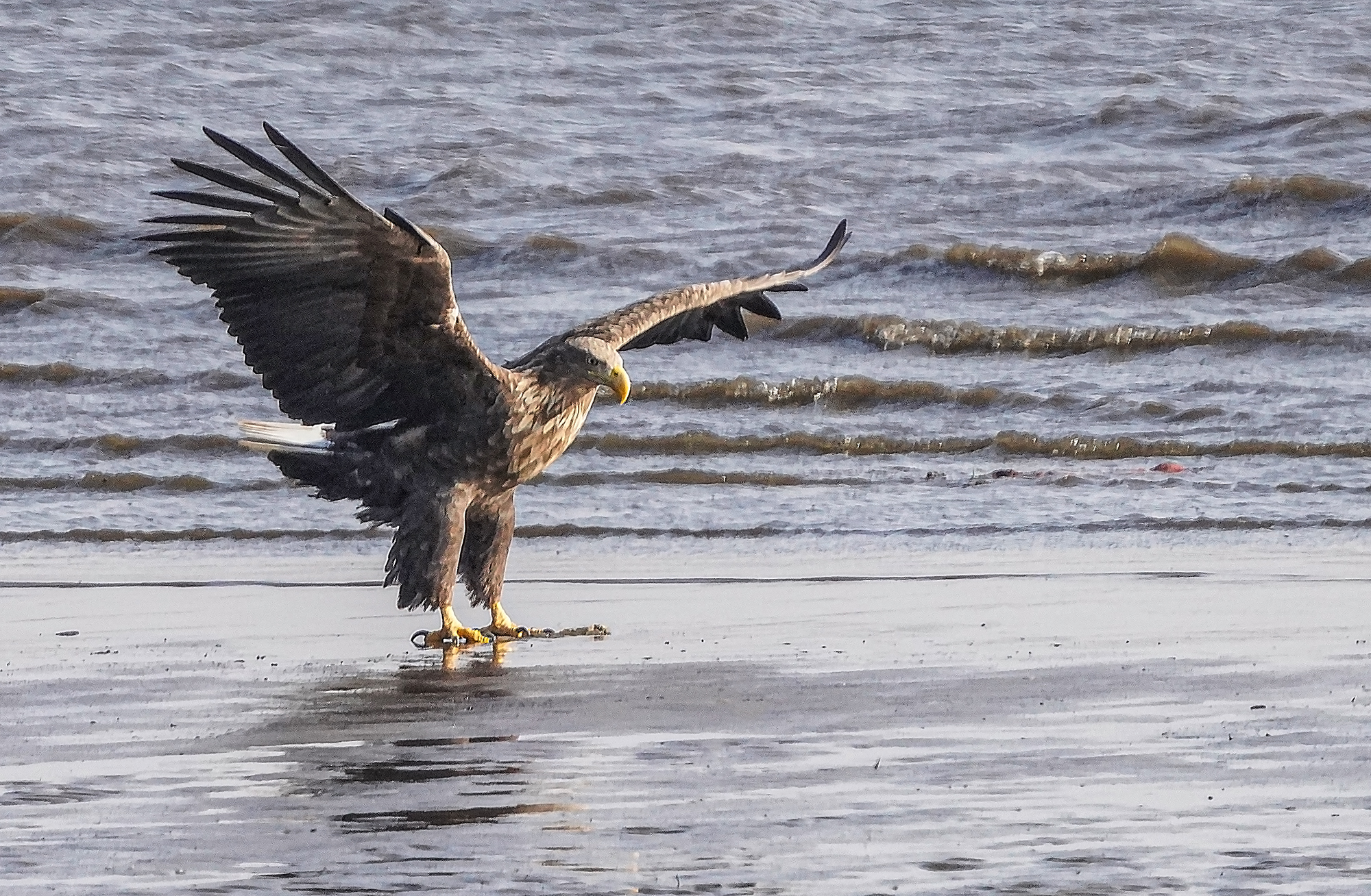 담황갈색의 머리와 목, 꼬리가 하얀색이라 흰꼬리수리라는 이름이