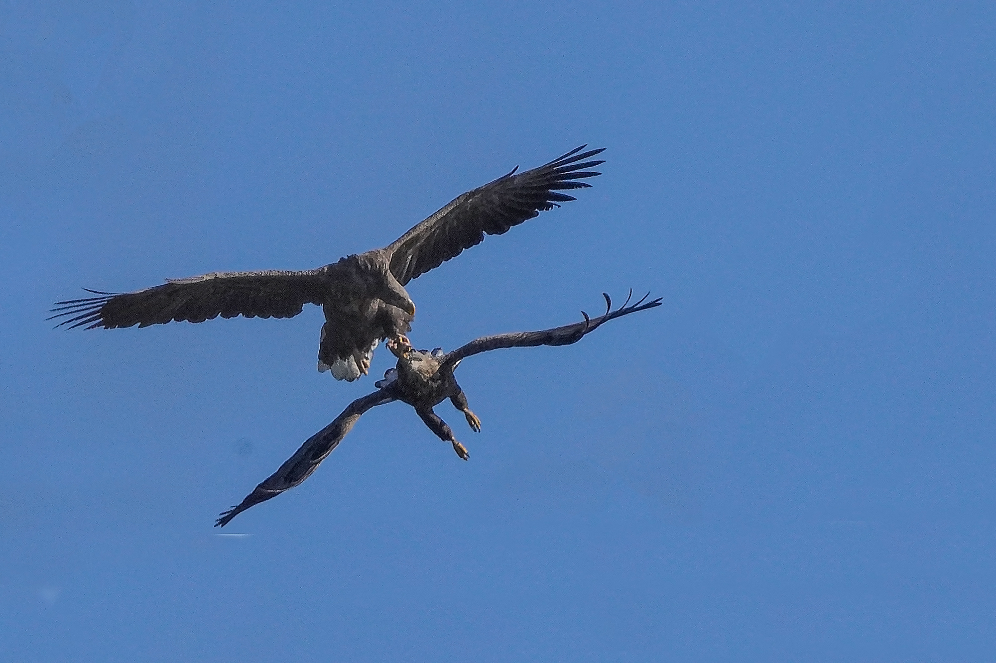 흰꼬리수리 한쌍 두마리가 하늘높이 선회비행을 하더니 고도를 점점