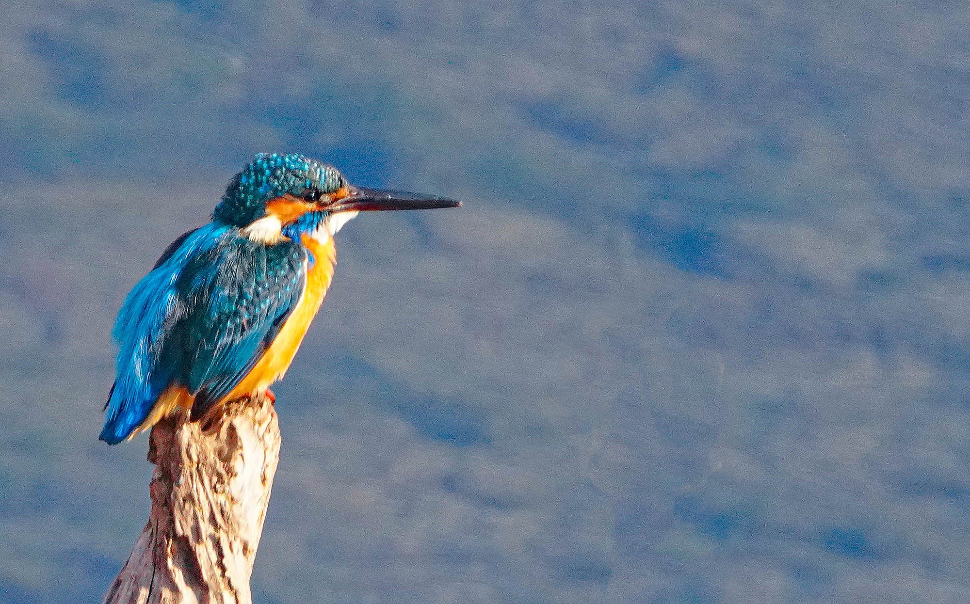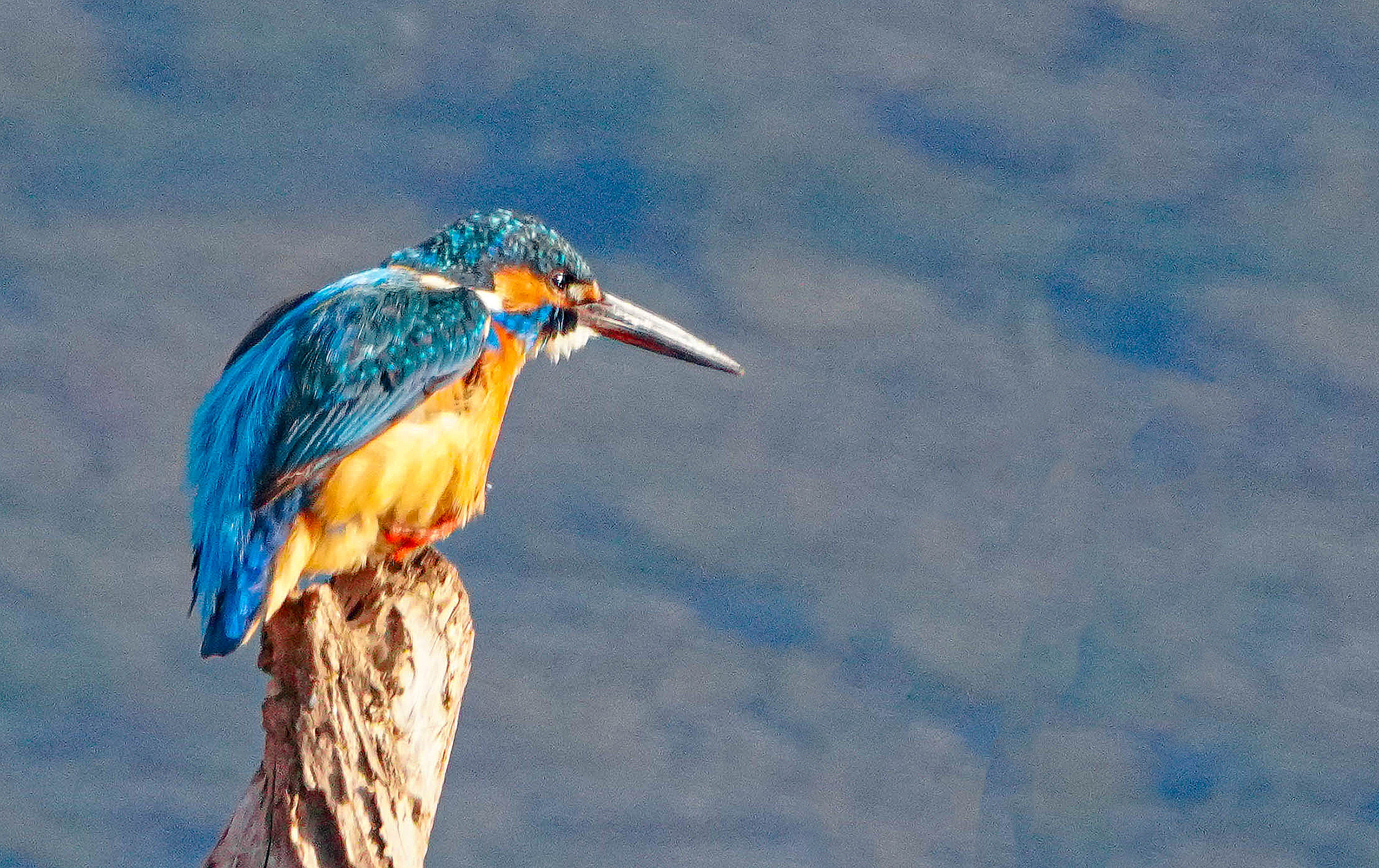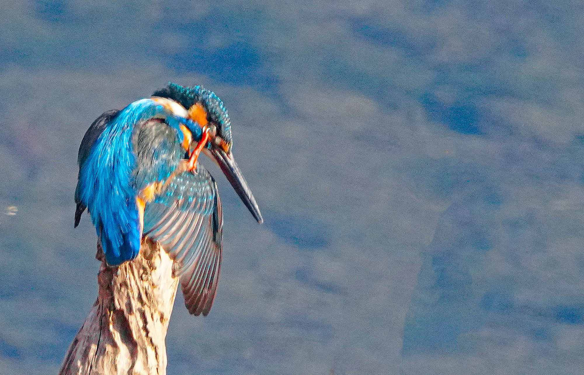 팔당에서 고니가 날기를 기다리던 중 우연히 물총새를 만났다,