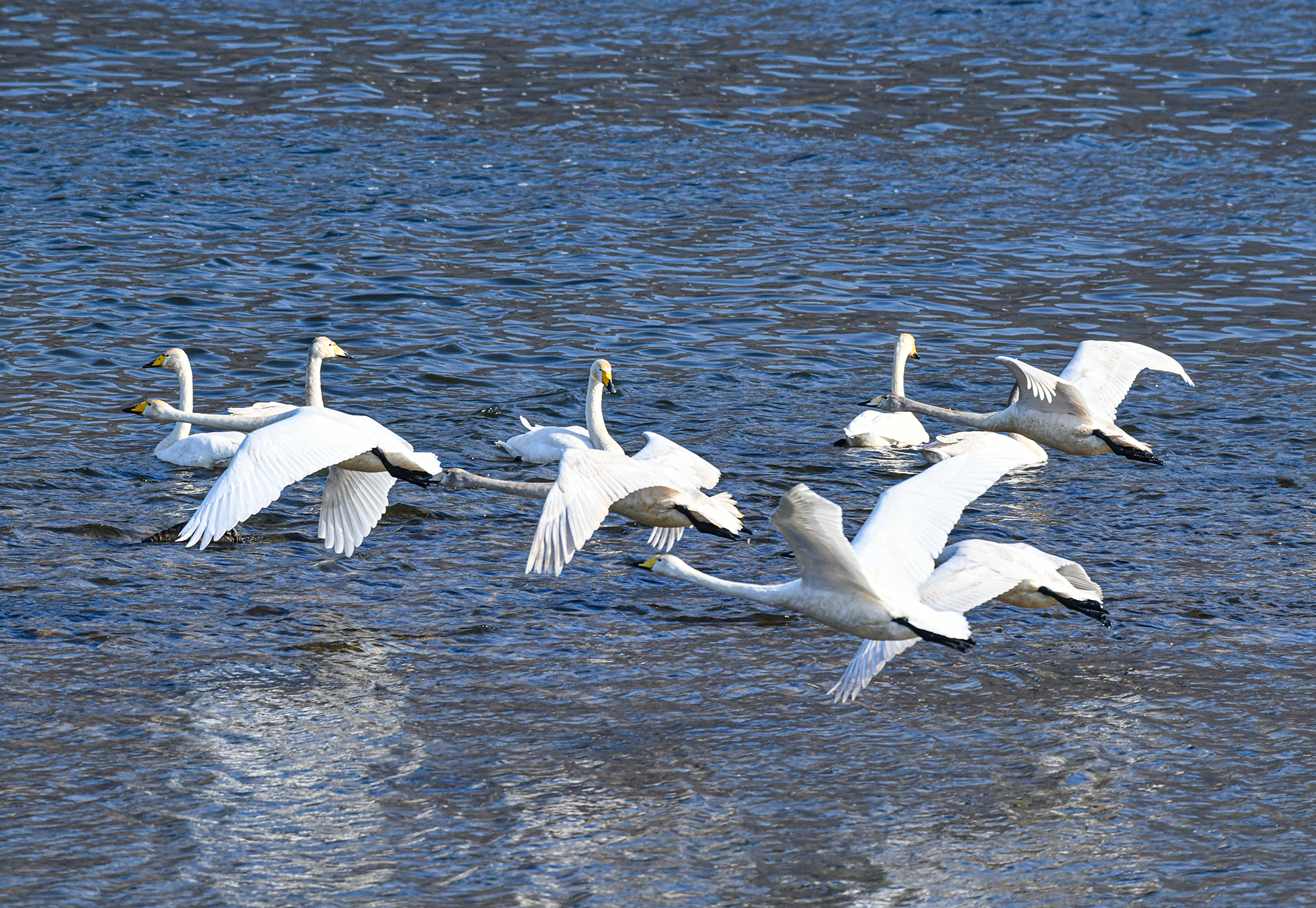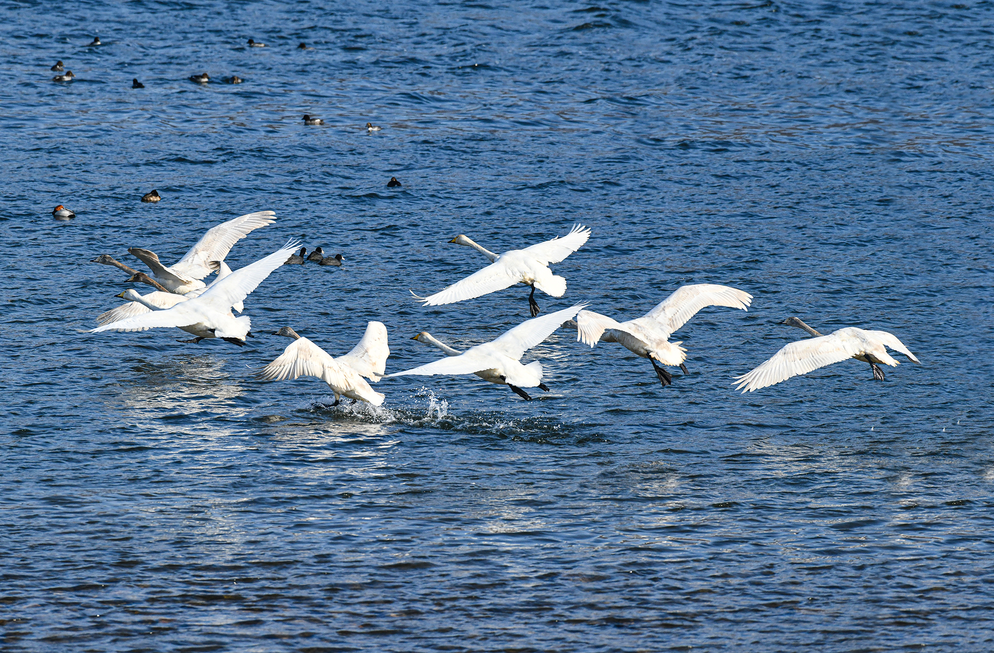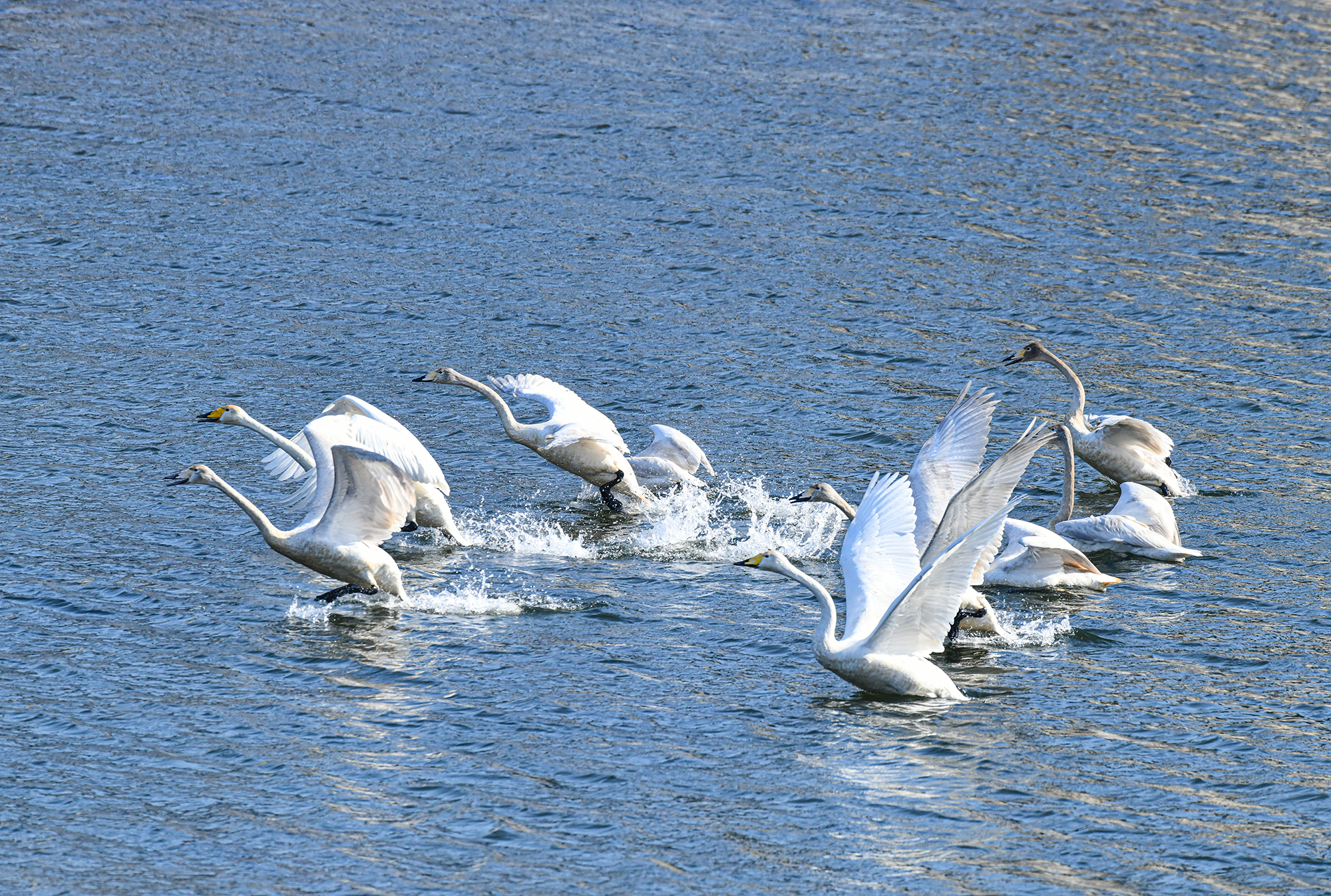 언제 날지 알수는 없으나 고니가 물을 박차고 하늘로 날아