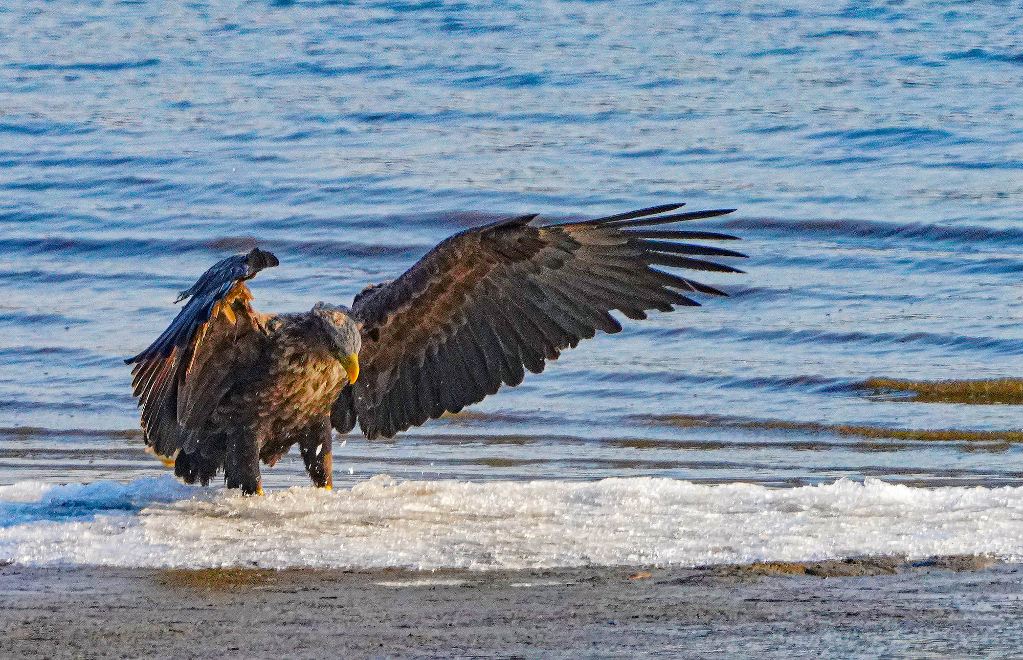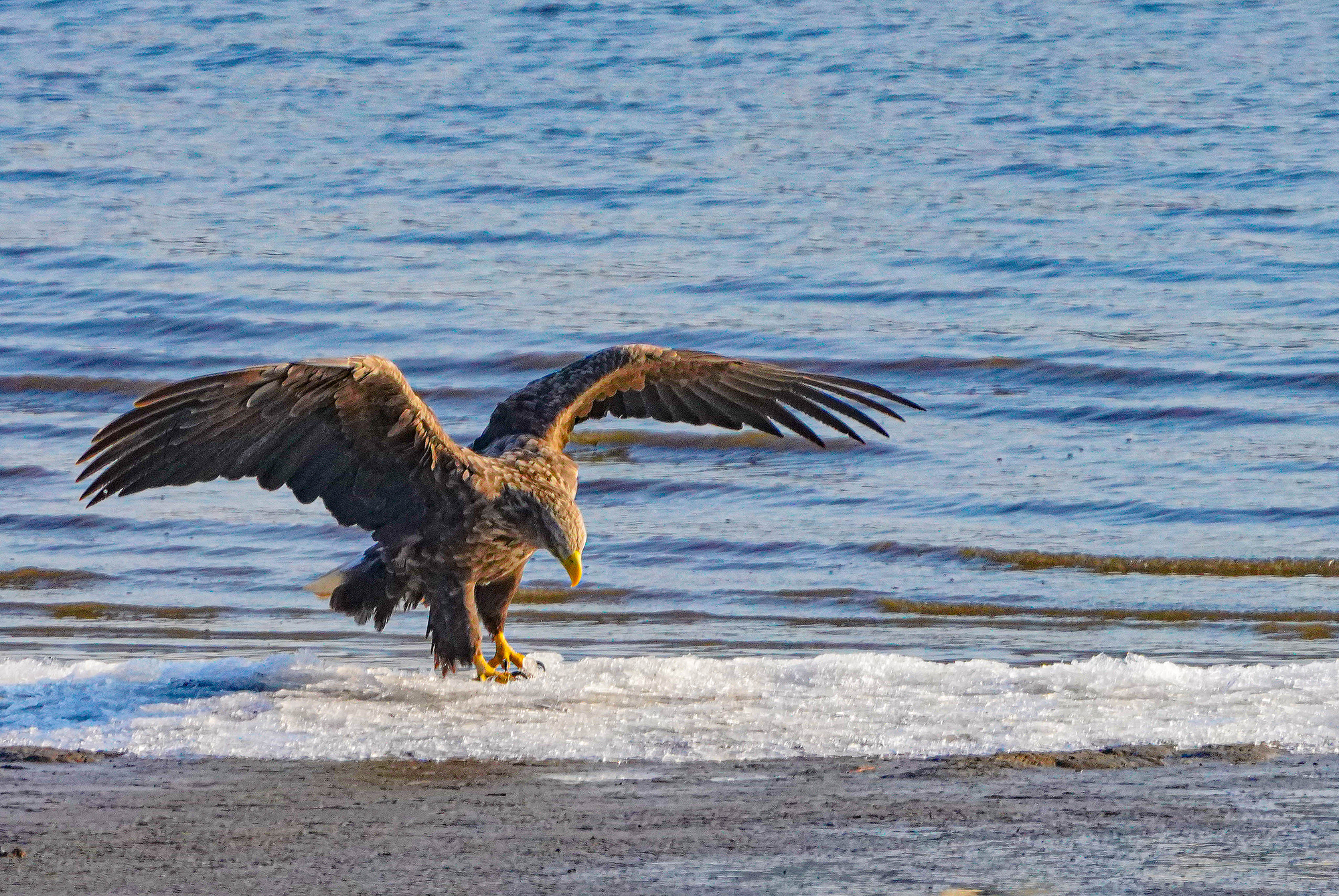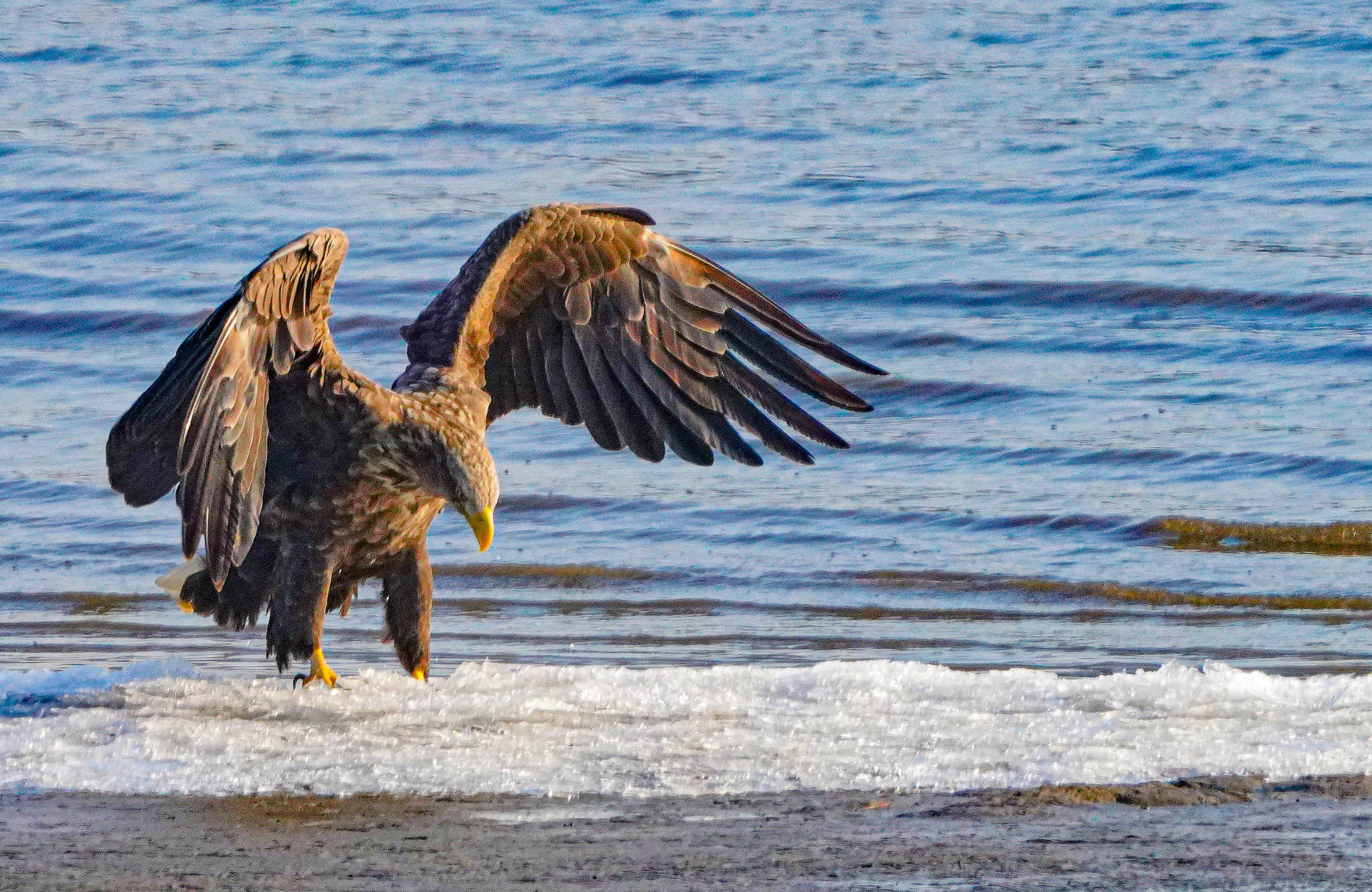 담황갈색의 머리와 목, 꼬리가 하얀색이라 흰꼬리수리라는 이름이