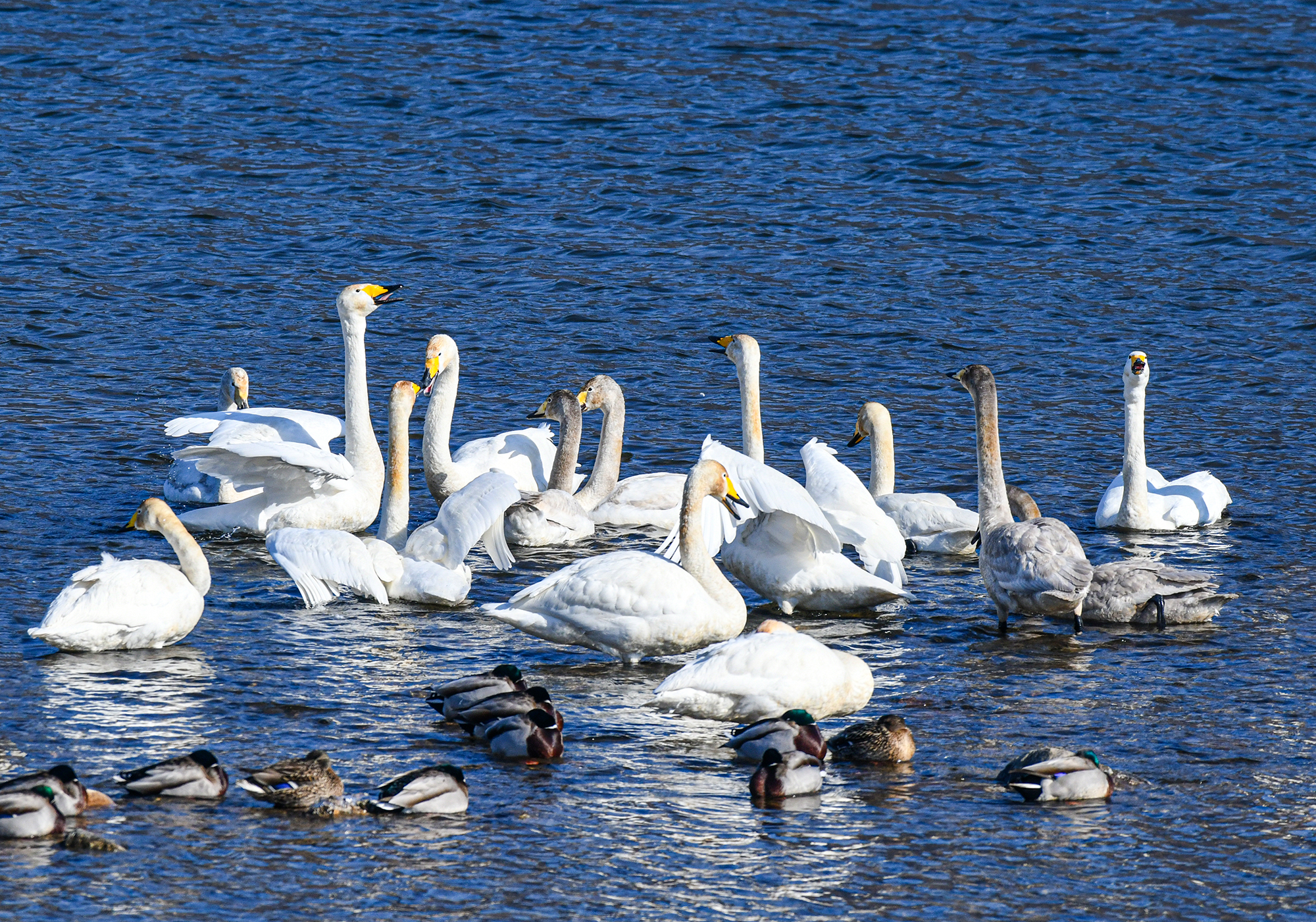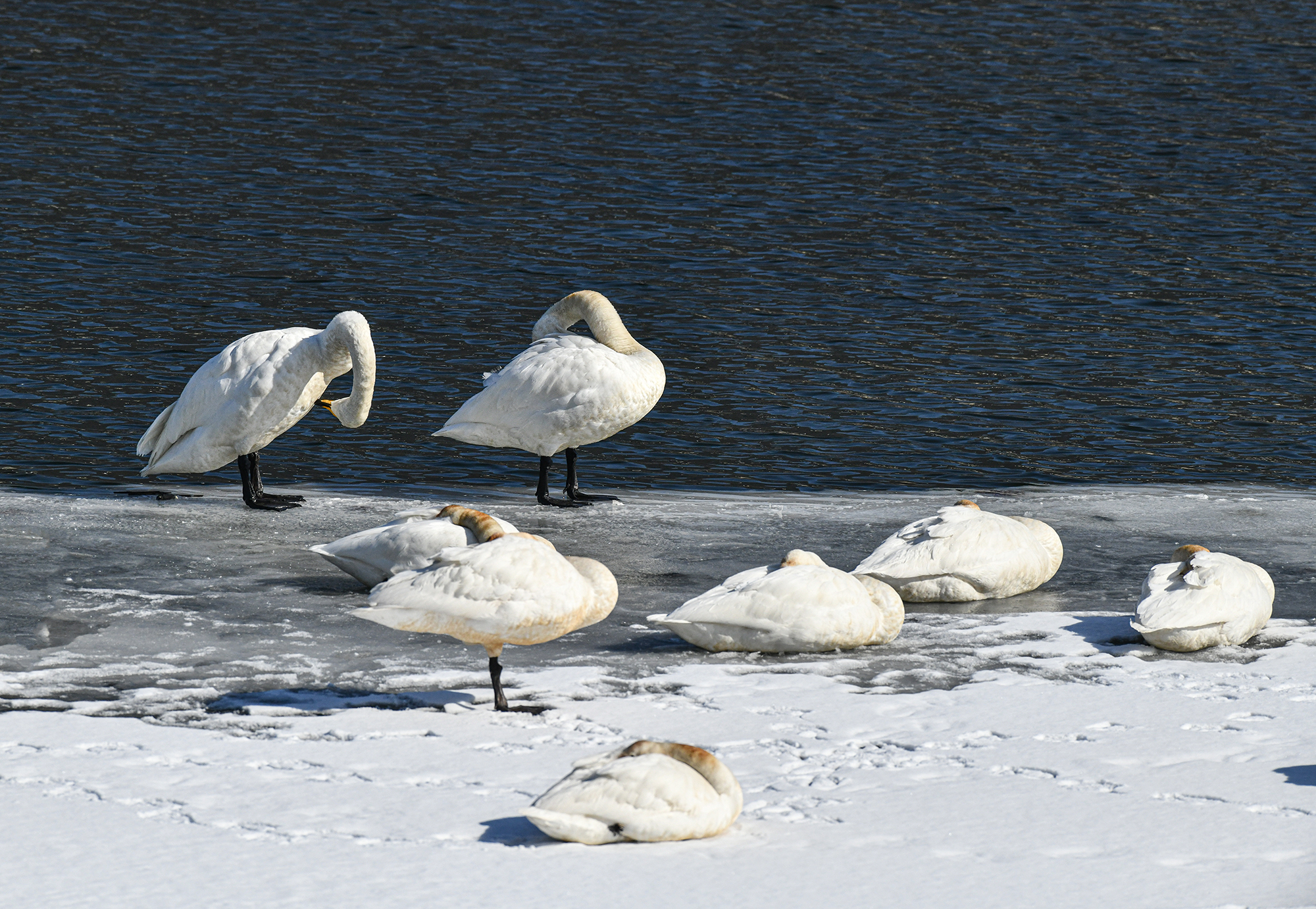 잔뜩 웅크리고 있던 고니들은 따듯한 햇빛을 받아 10;30경부터