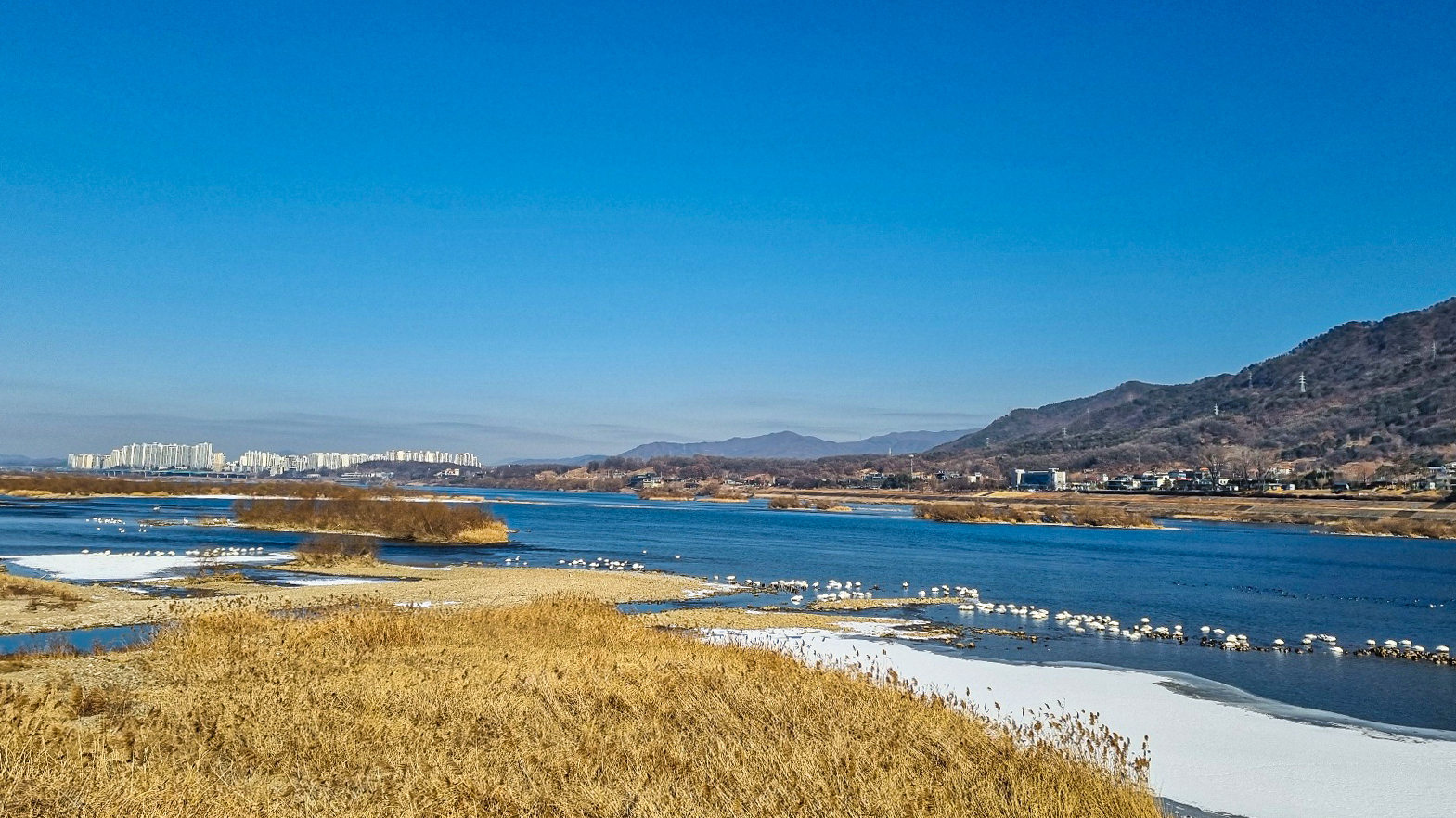 팔당호에서 고니가 날기를 기다리며 고니를 지켜보는 일은